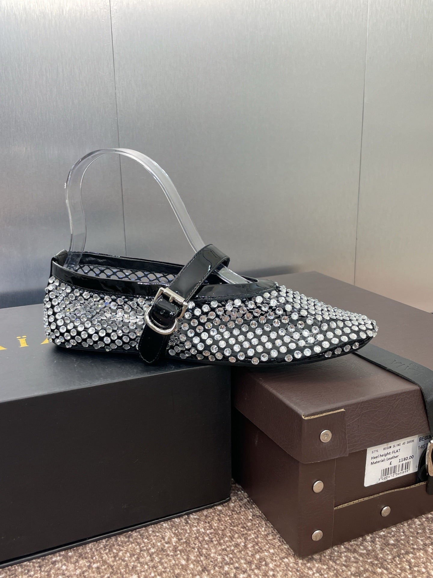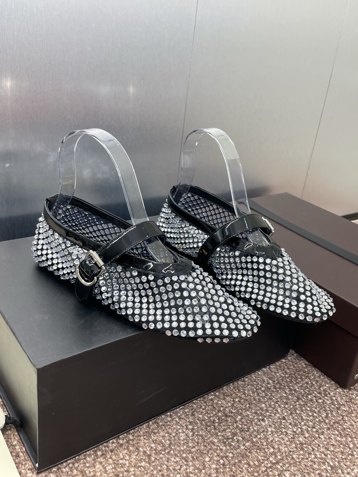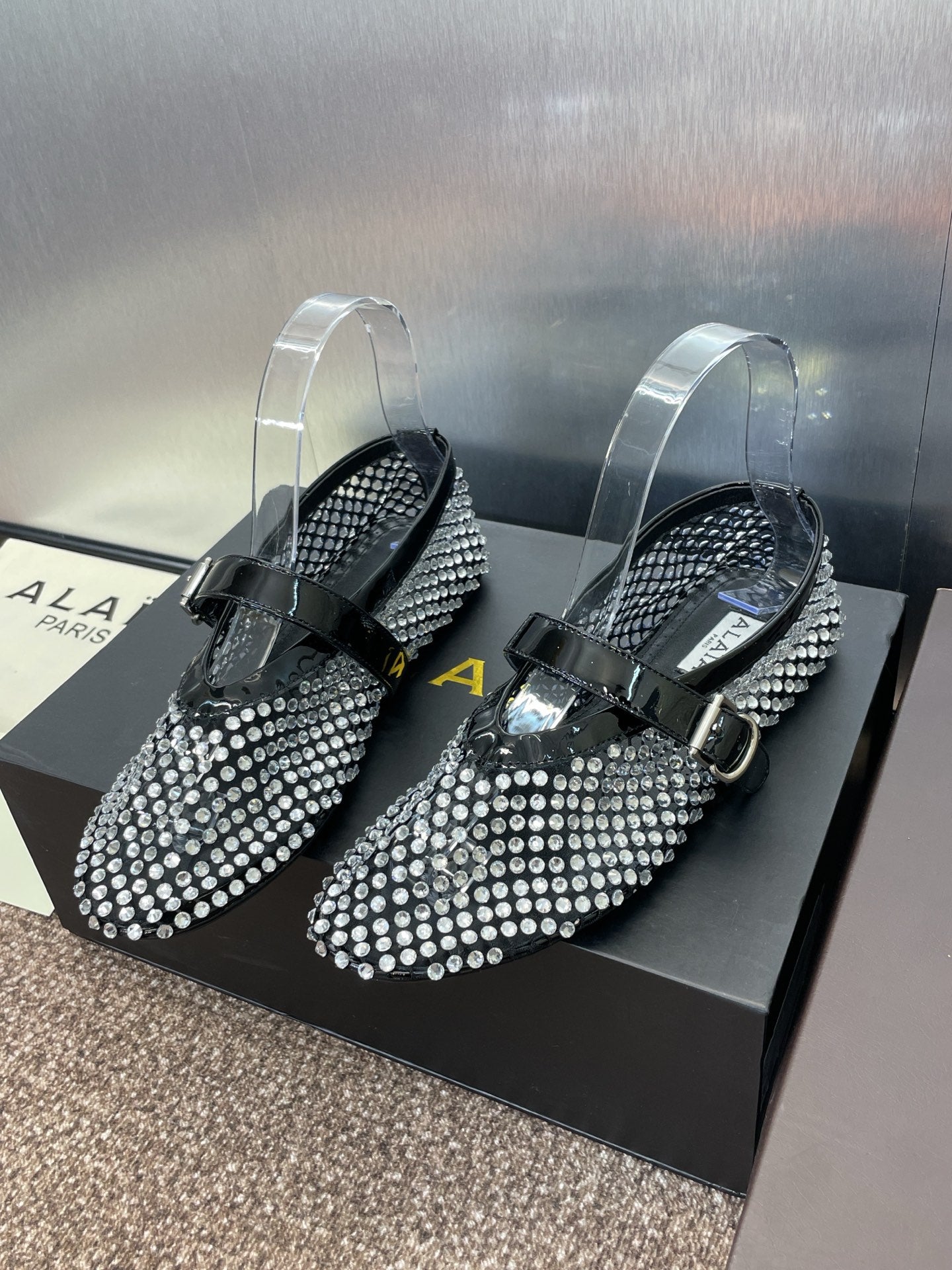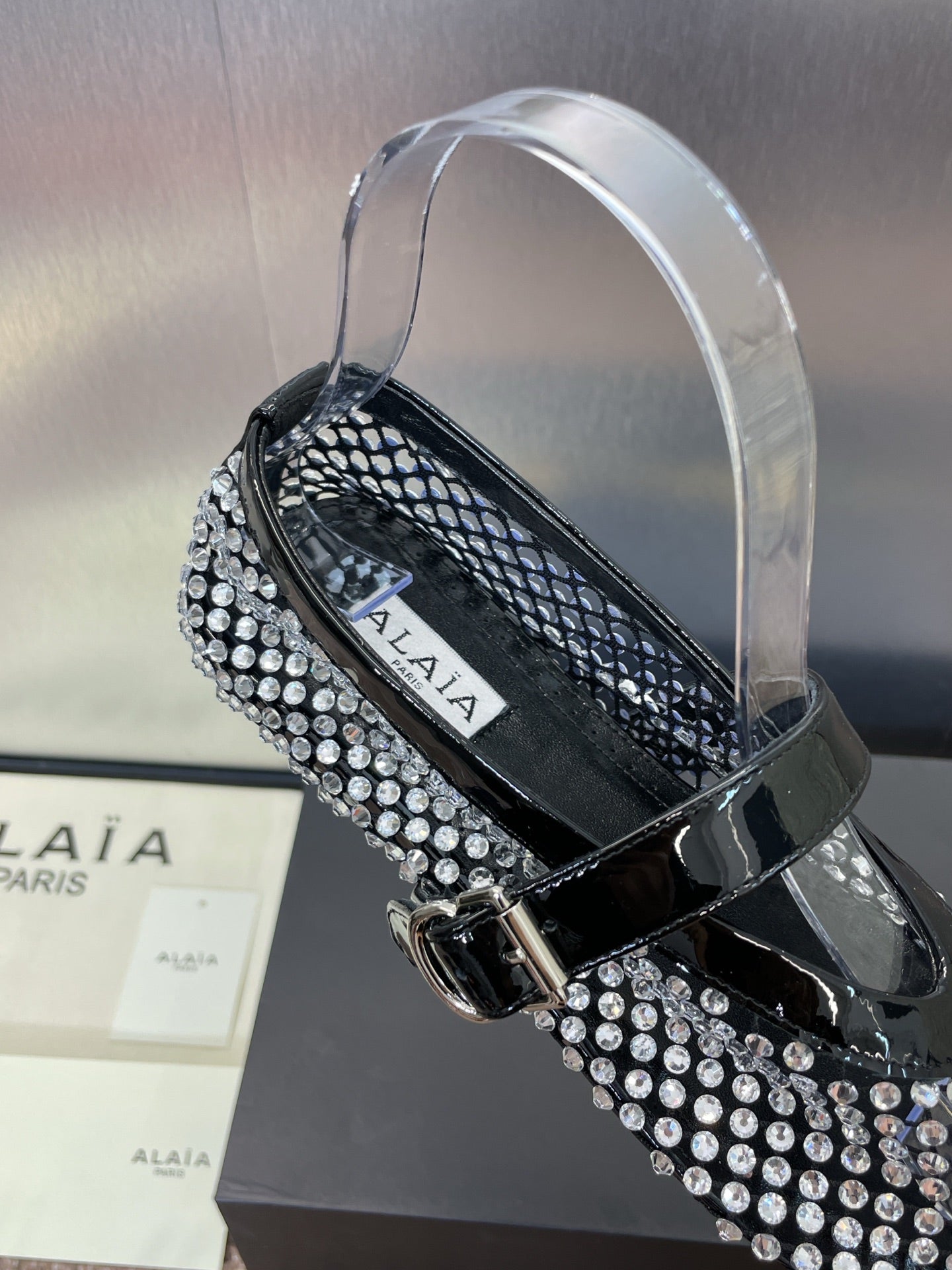 ALAIA MARY JANE FLAT 25S IN BLACK LAMBSKIN EMBELLISHED WITH CRYSTALS