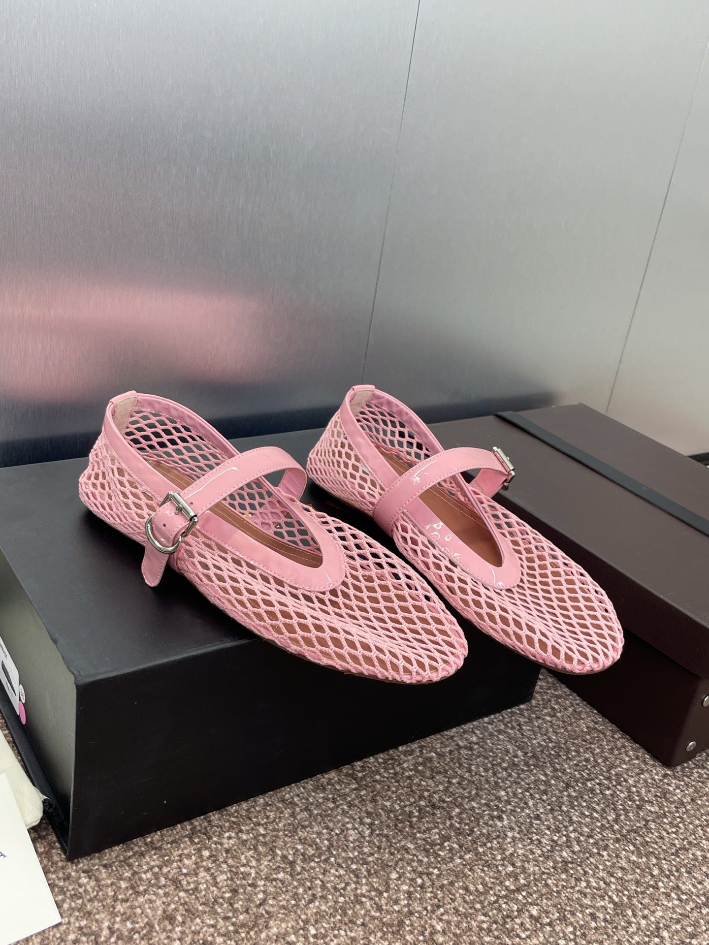 ALAIA MARY JANE FLAT 25S IN LIGHT PINK MESH CALFSKIN