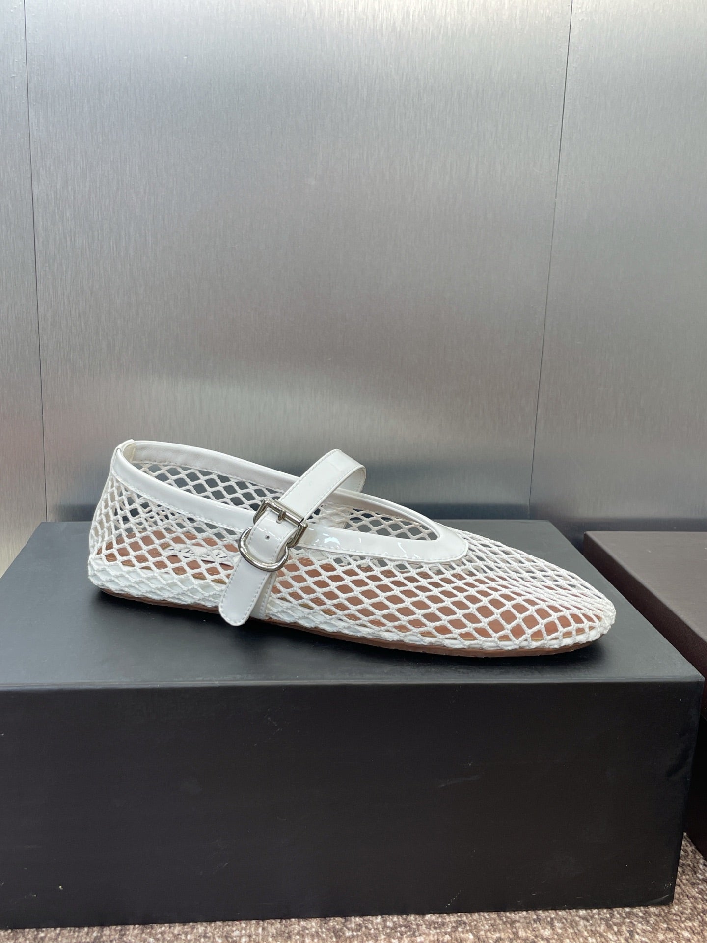ALAIA MARY JANE FLAT 25S IN WHITE MESH CALFSKIN