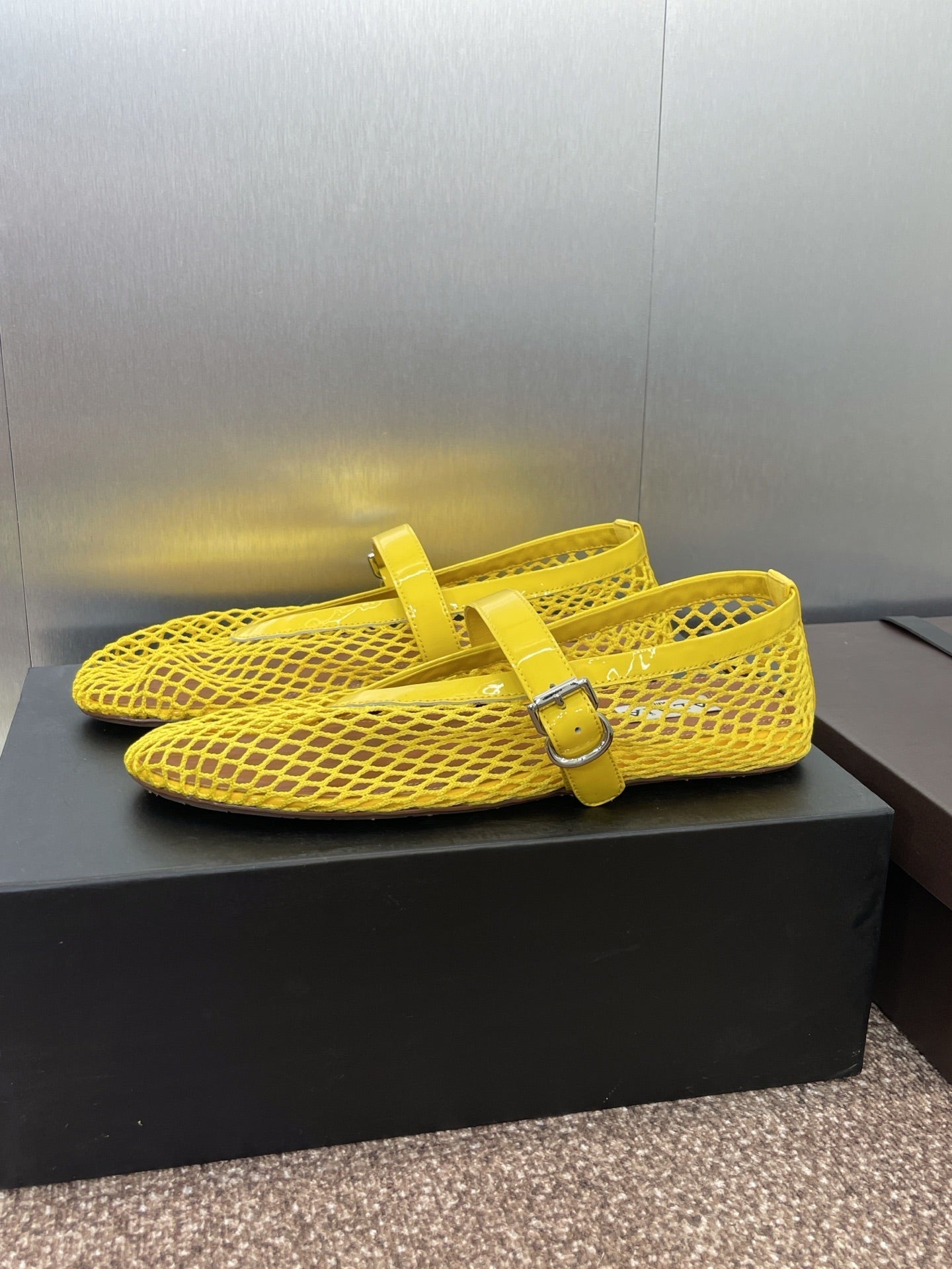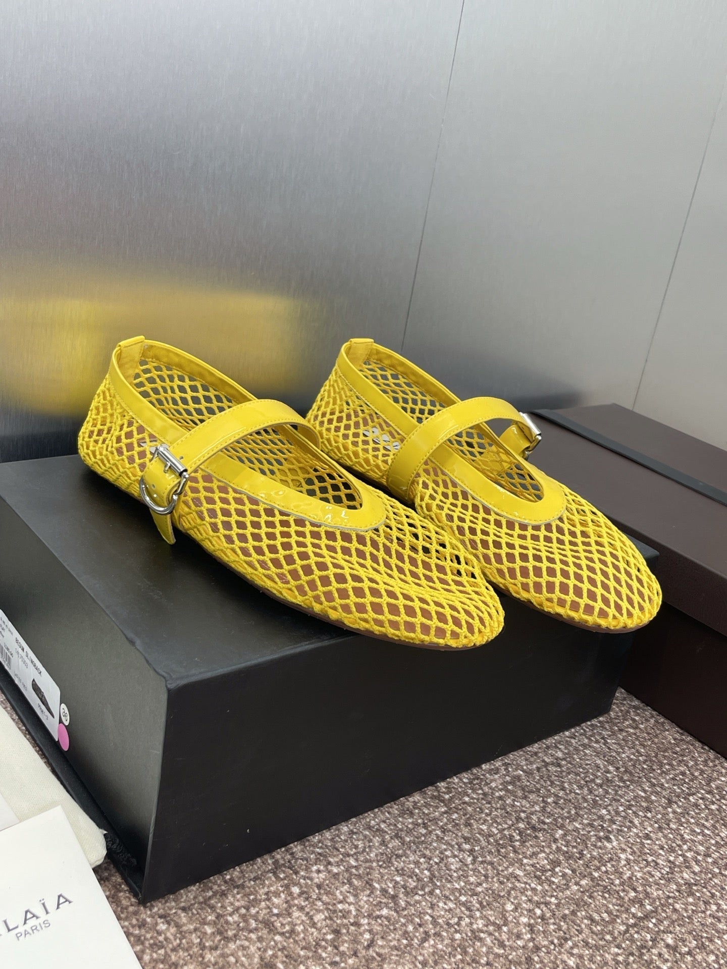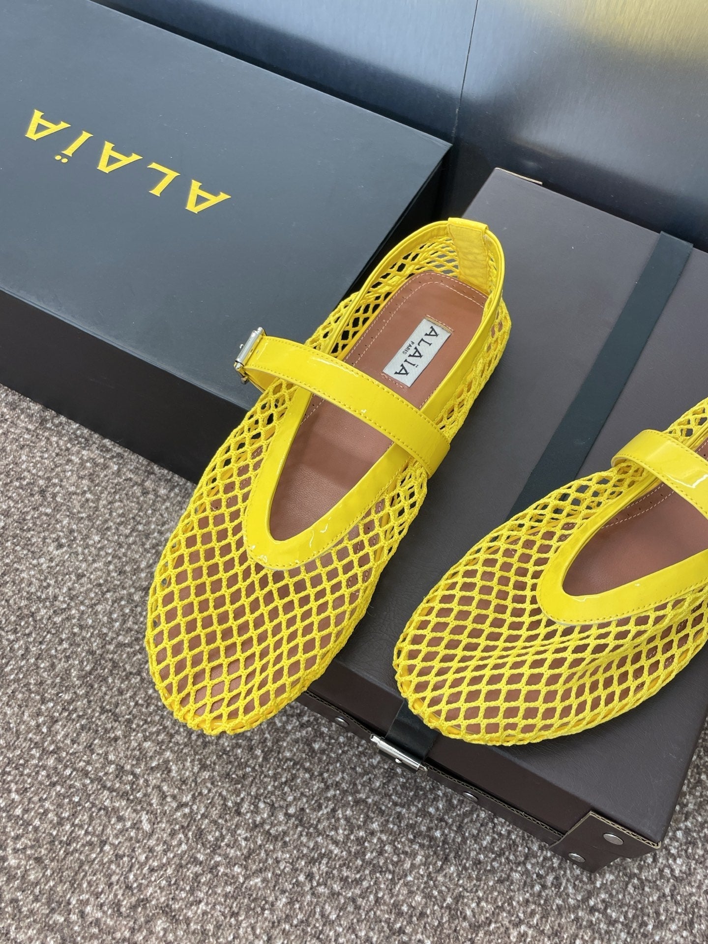 ALAIA MARY JANE FLAT 25S IN YELLOW MESH CALFSKIN