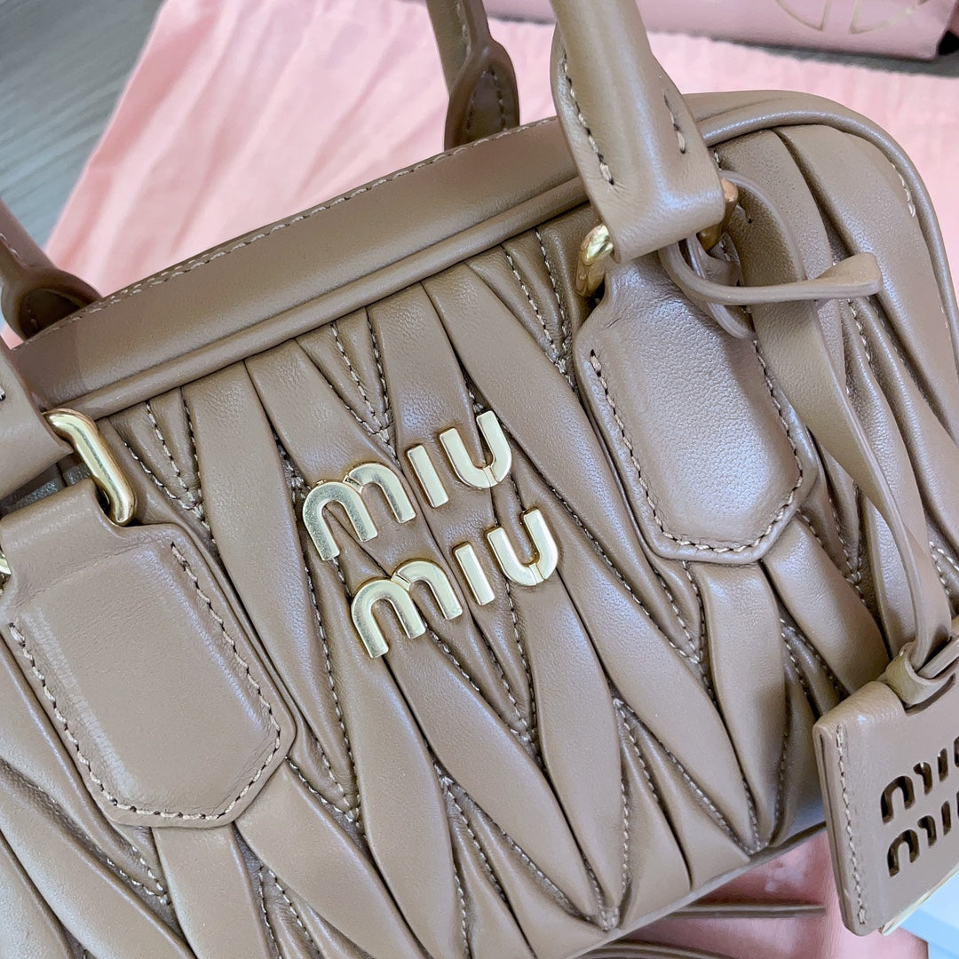 ARCADIE MATELASSÉ NAPPA SMALL BAG 19 IN COFFEE LAMBSKIN GOLD HARDWARE