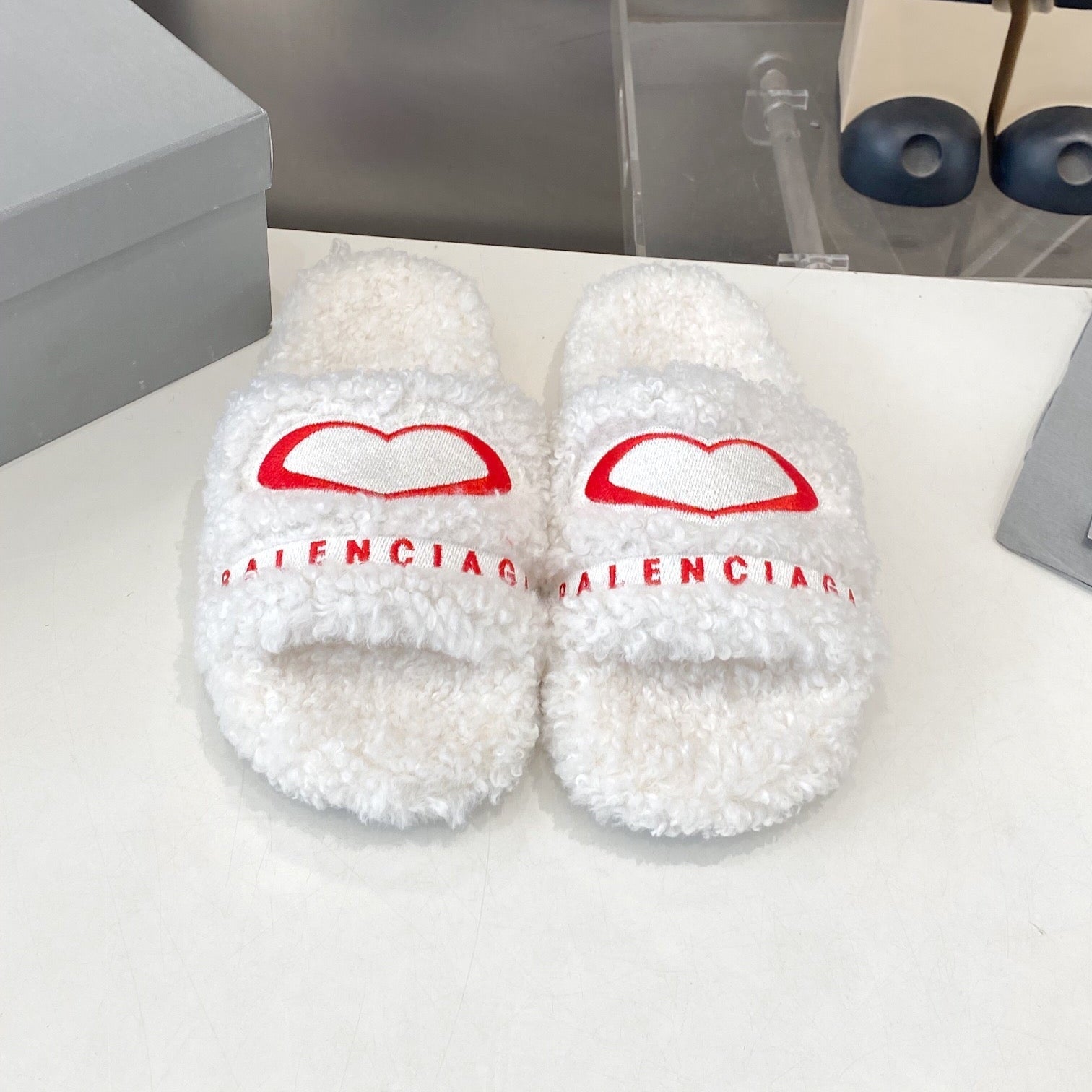 BALENCIAGA 25S FLAT SLIPPERS IN WHITE WOOL