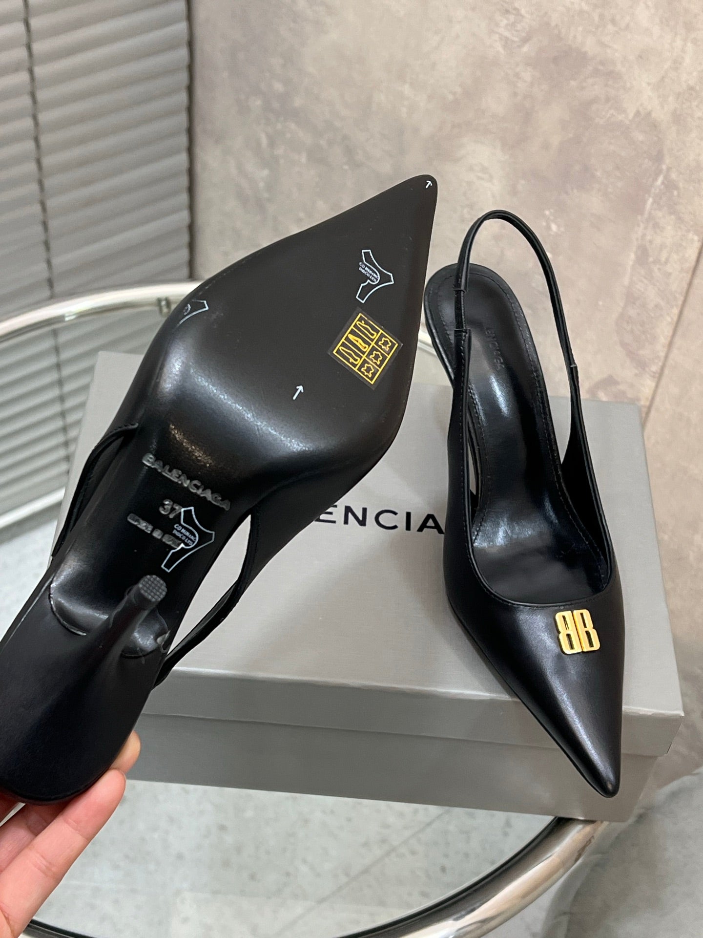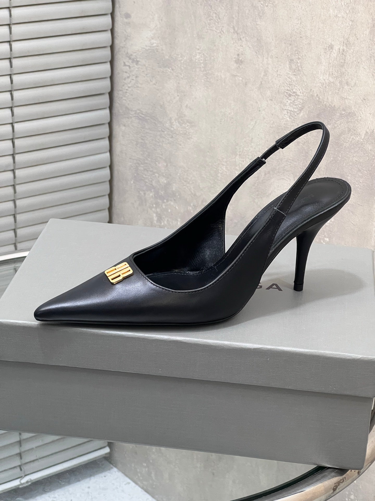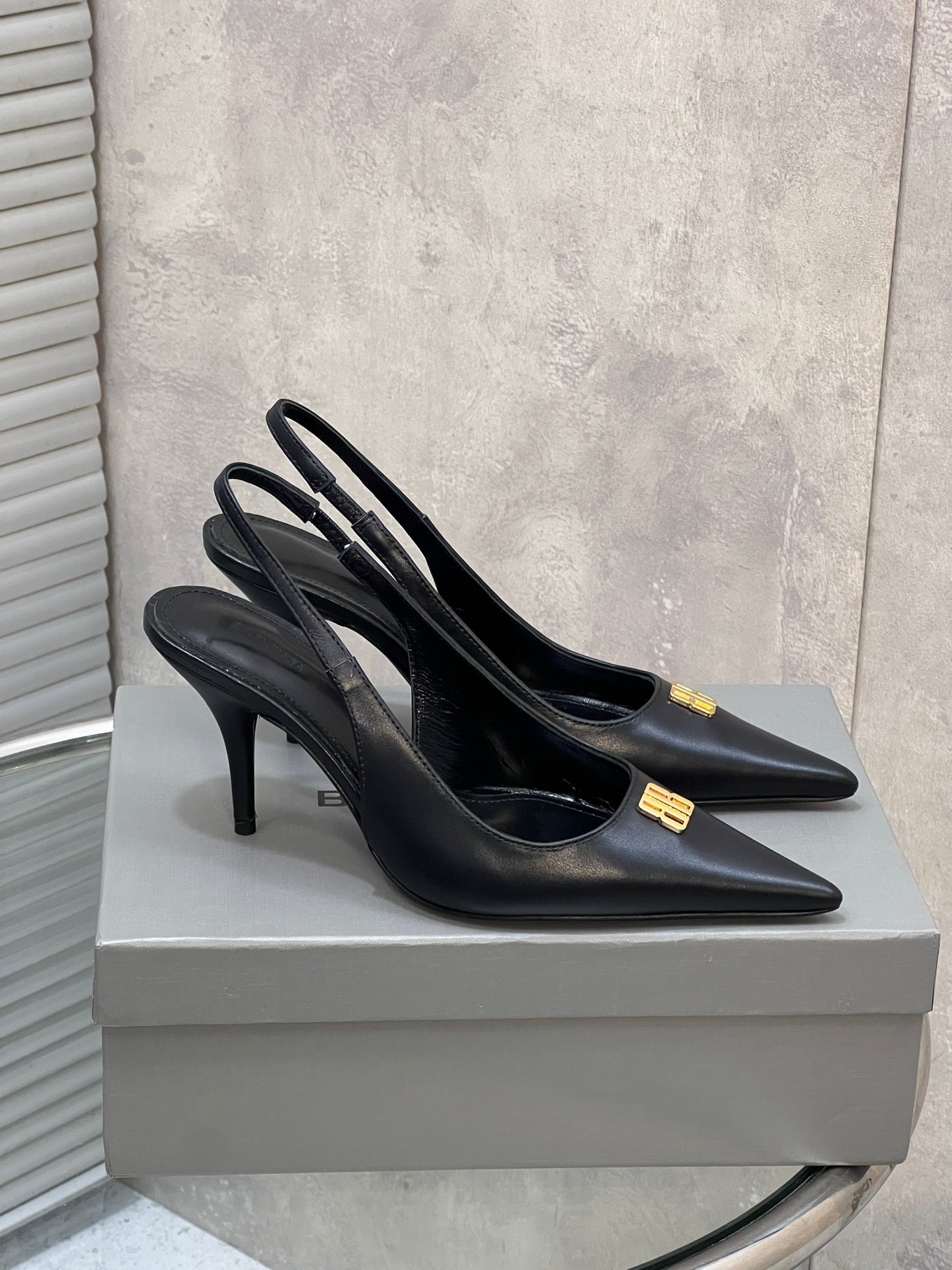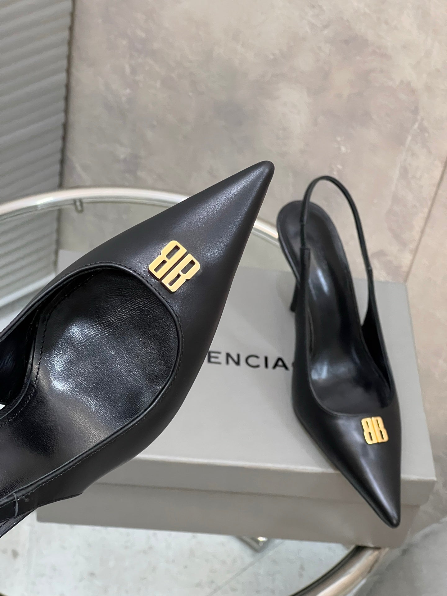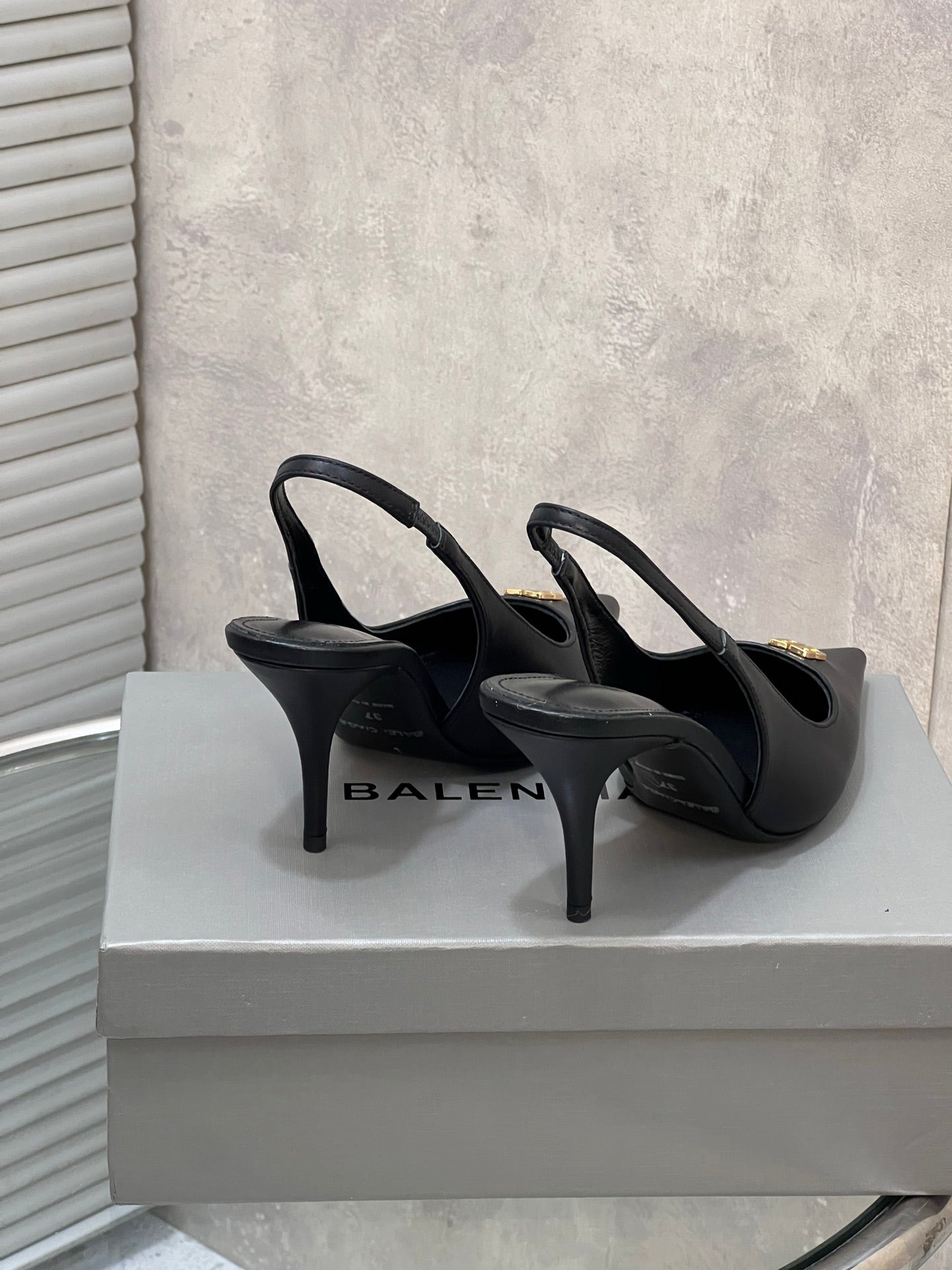 BALENCIAGA 25S HIGH-HEEL SLINGBACK 85 MM IN BLACK COW LEATHER WITH GOLD HARDWARE