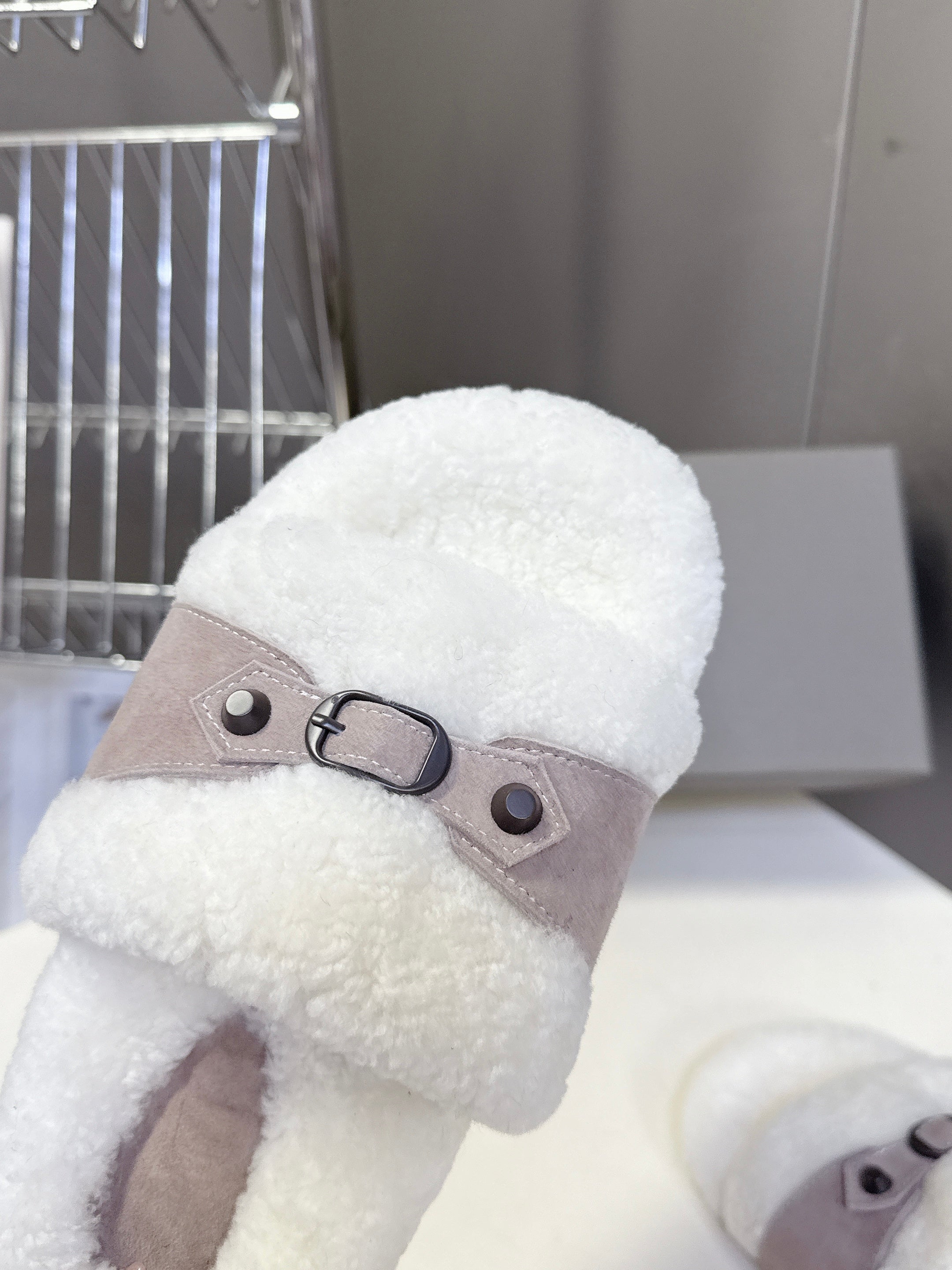 BALENCIAGA 25S SLIPPERS IN DUSTY PINK GRAY SUEDE AND WHITE WOOL