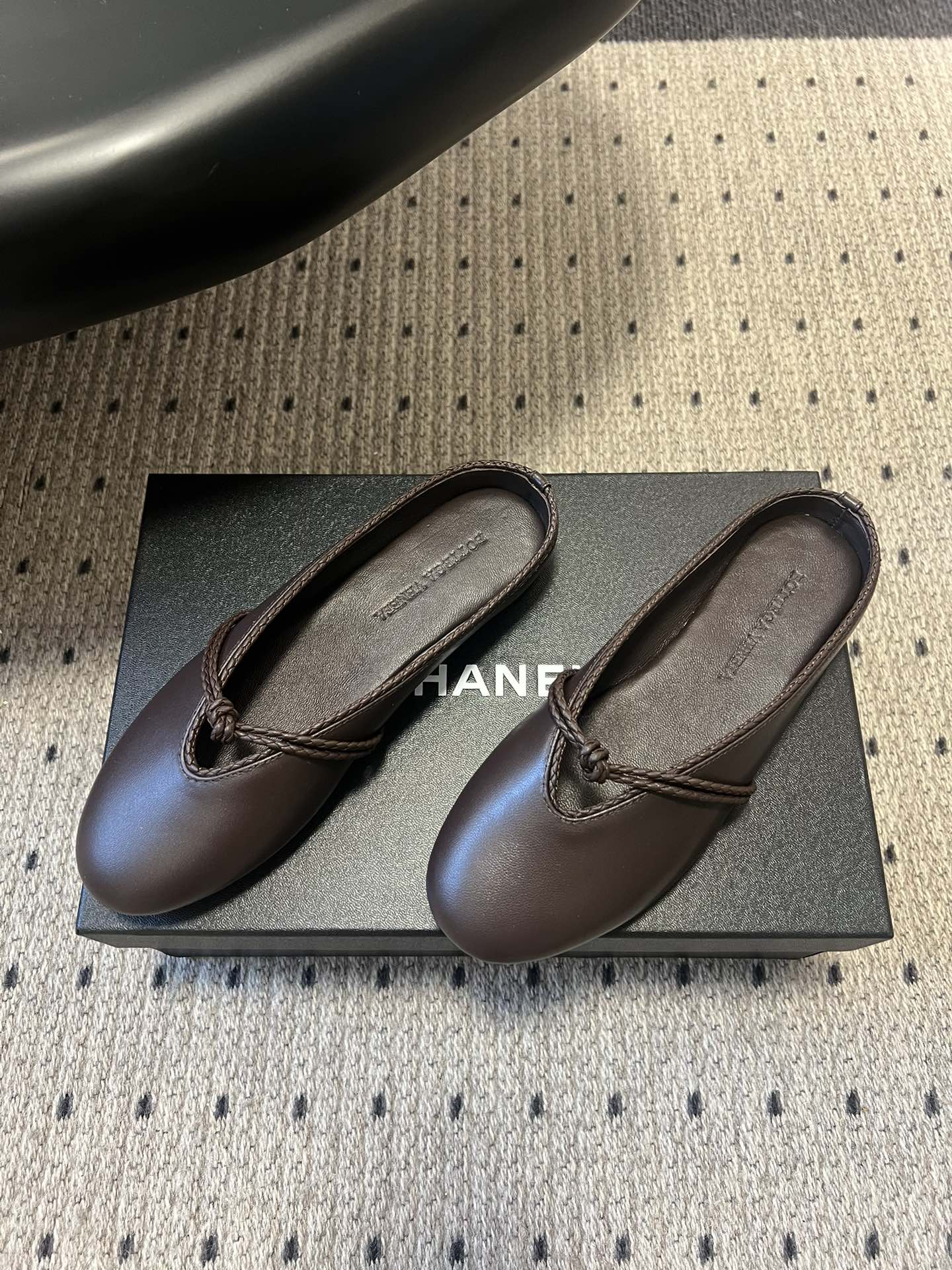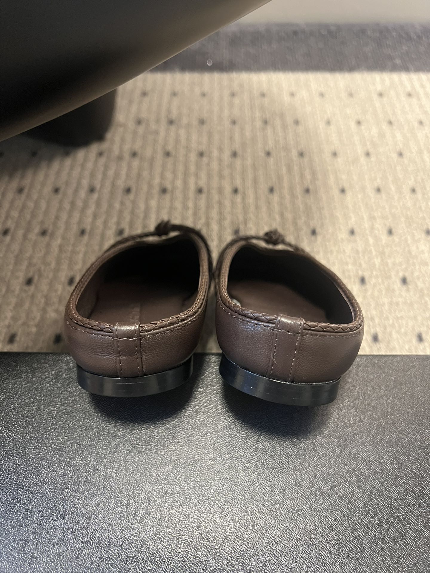 BOTTEGA VENETA 26S FLAT MULES IN DARK BROWN LAMBSKIN