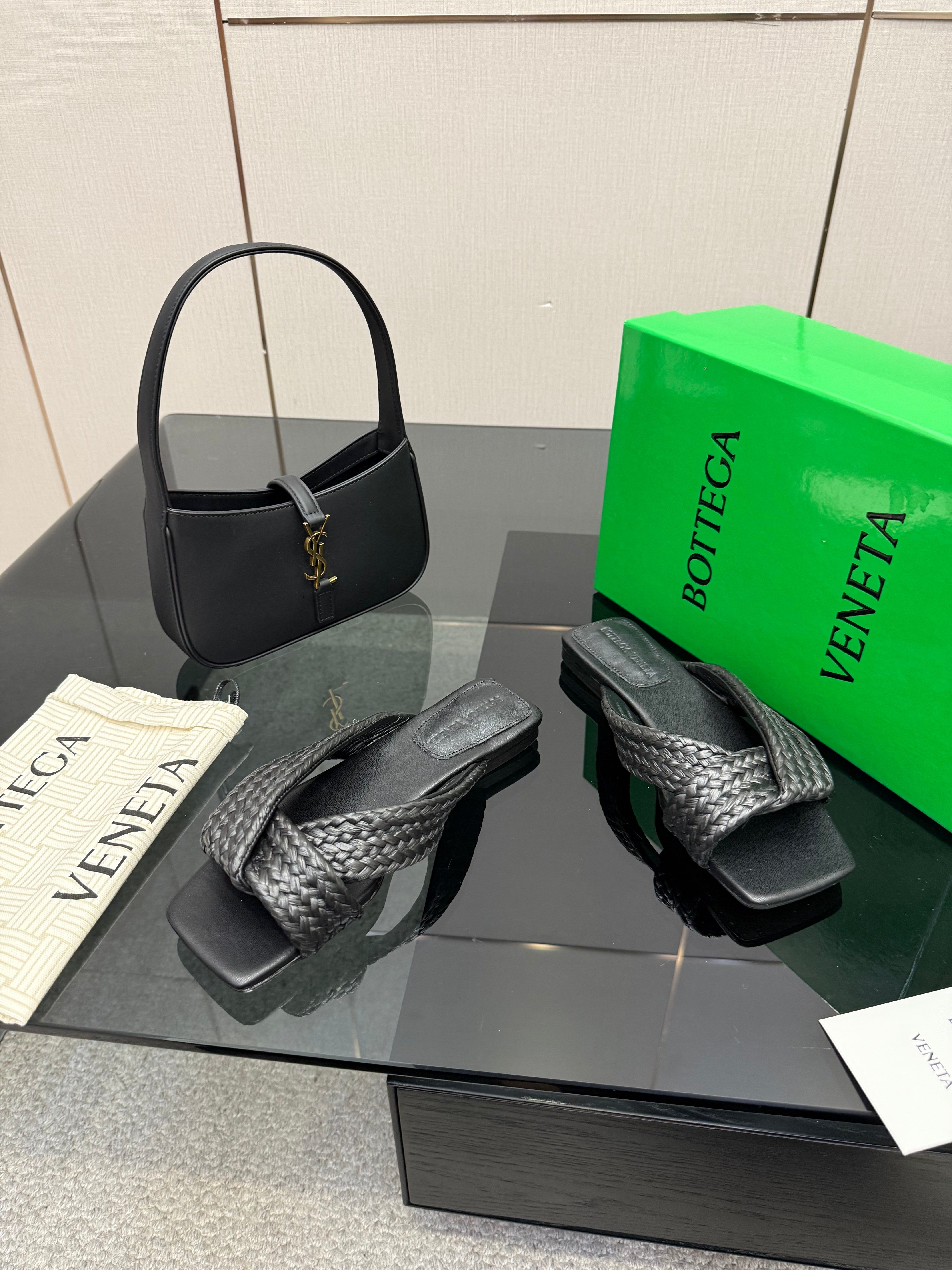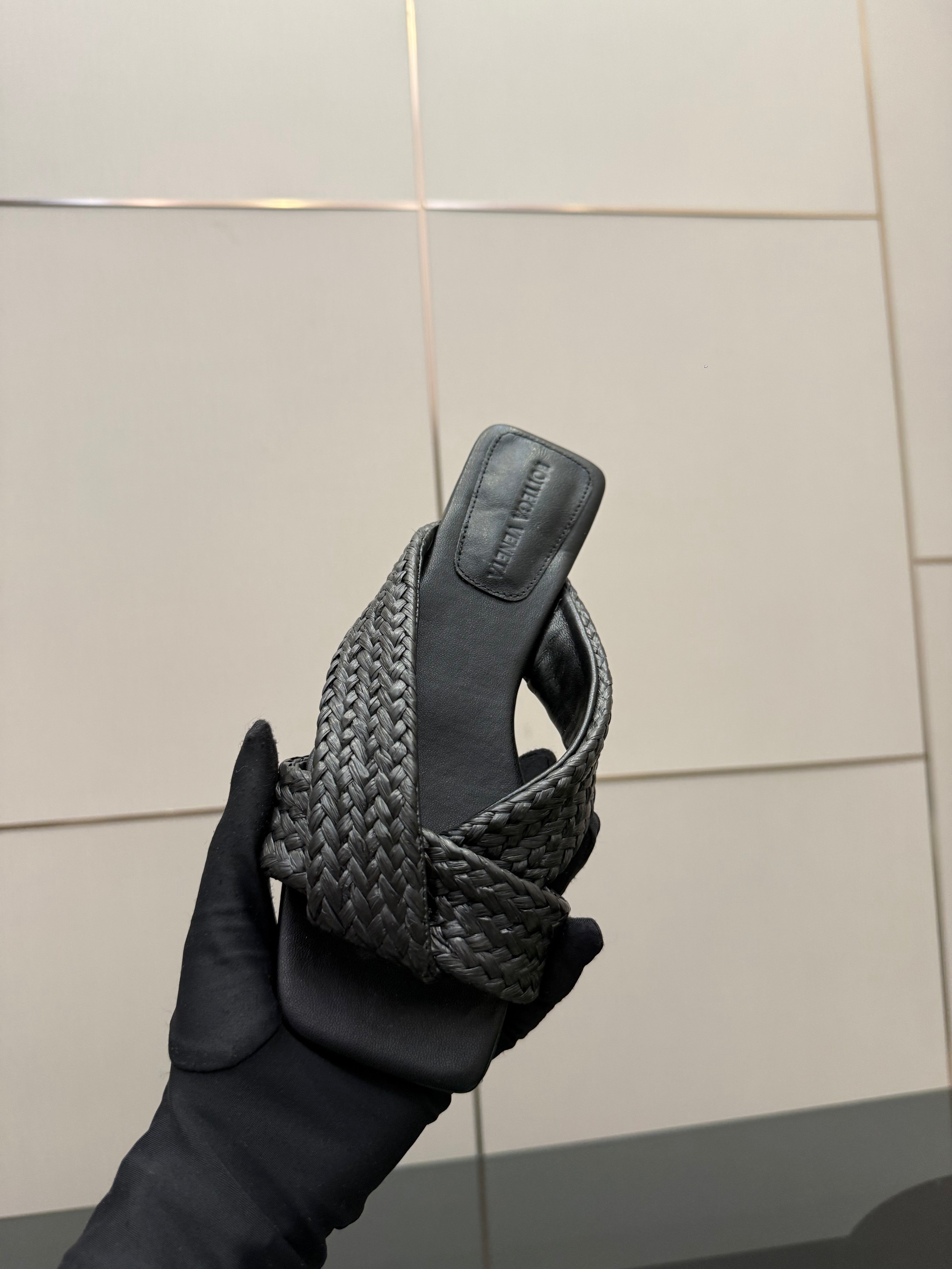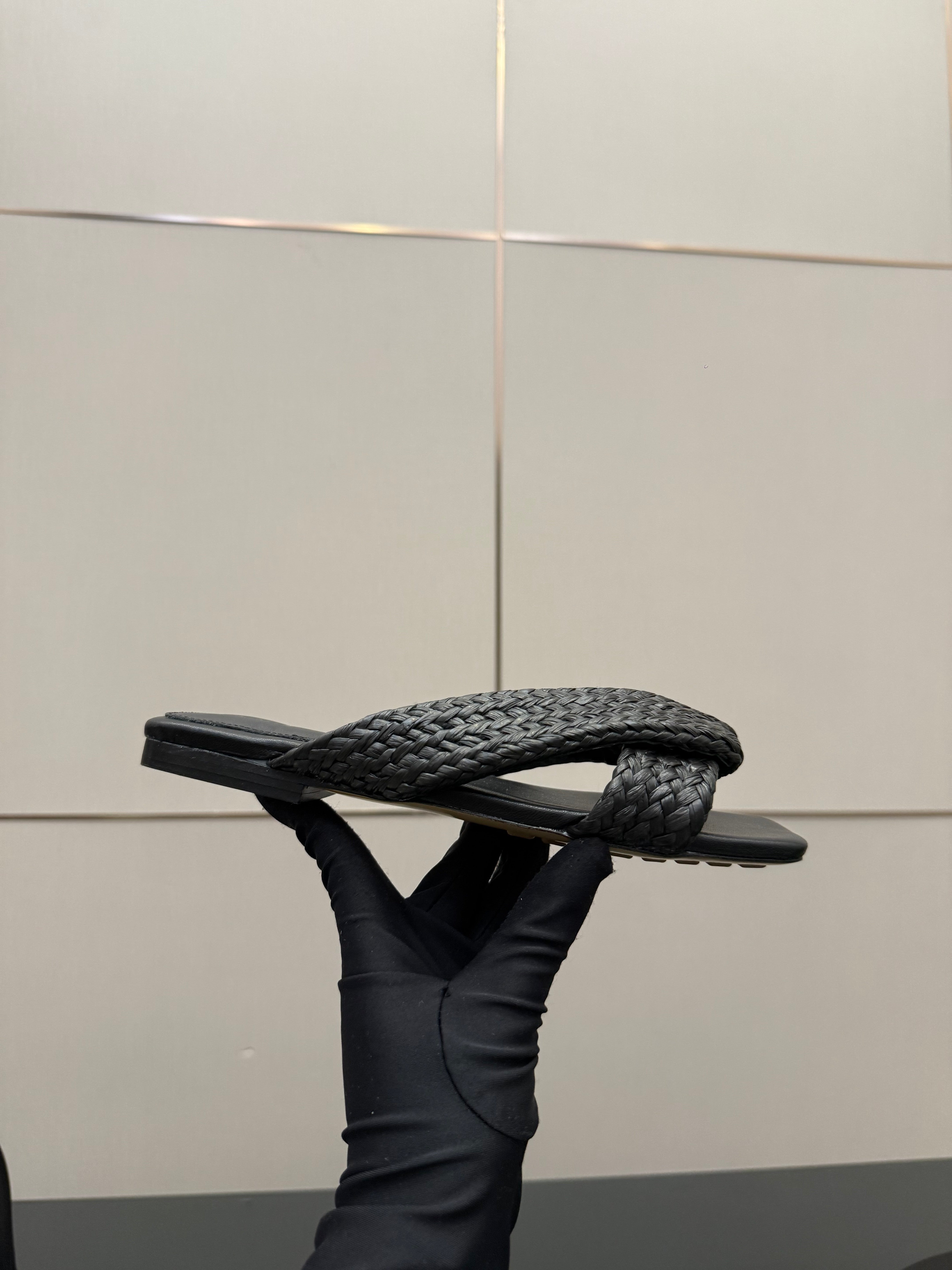 BOTTEGA VENETA 26S SANDALS IN BLACK CALFSKIN AND RAFFIA