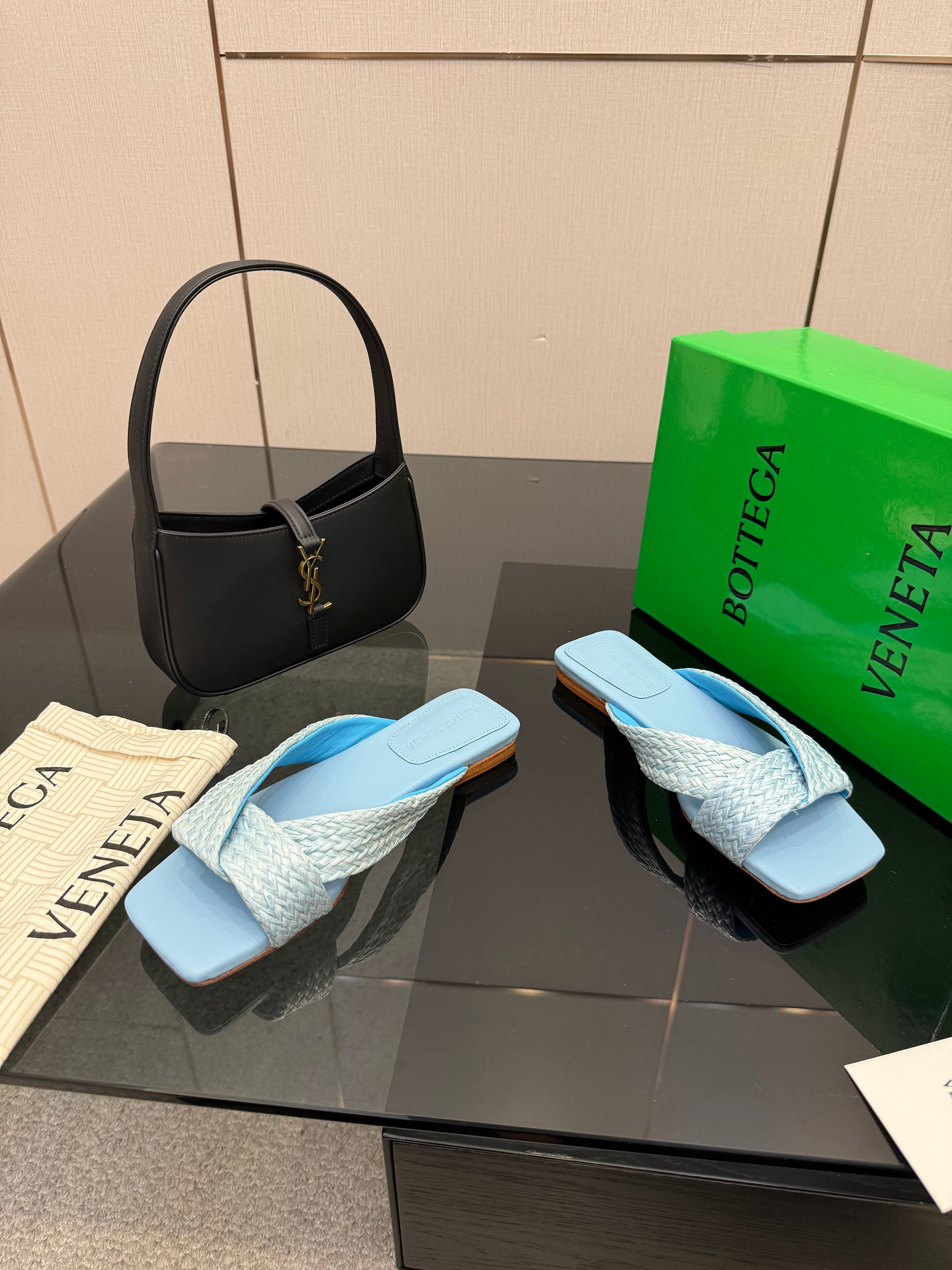 • Material: calfskin, raffia