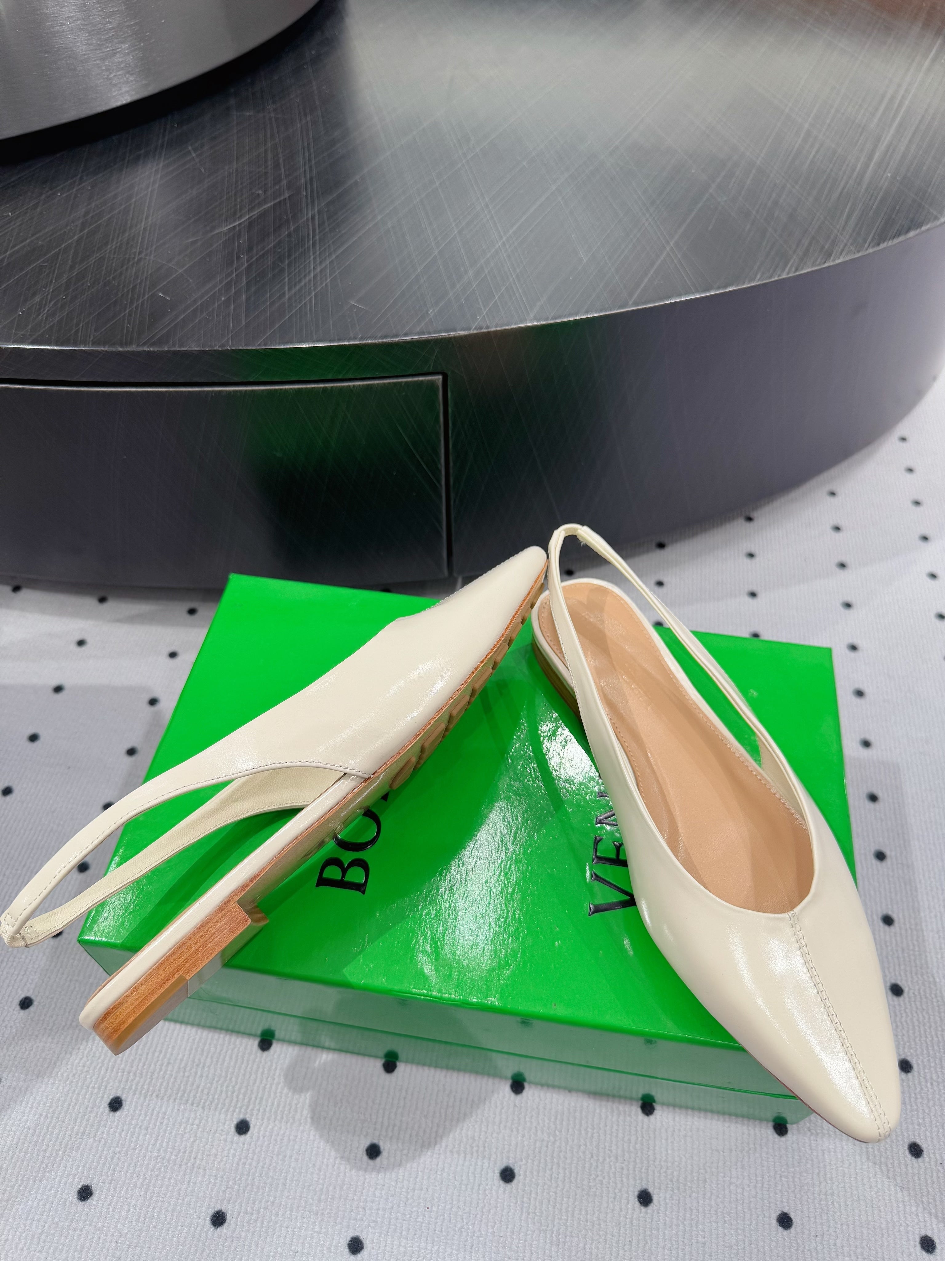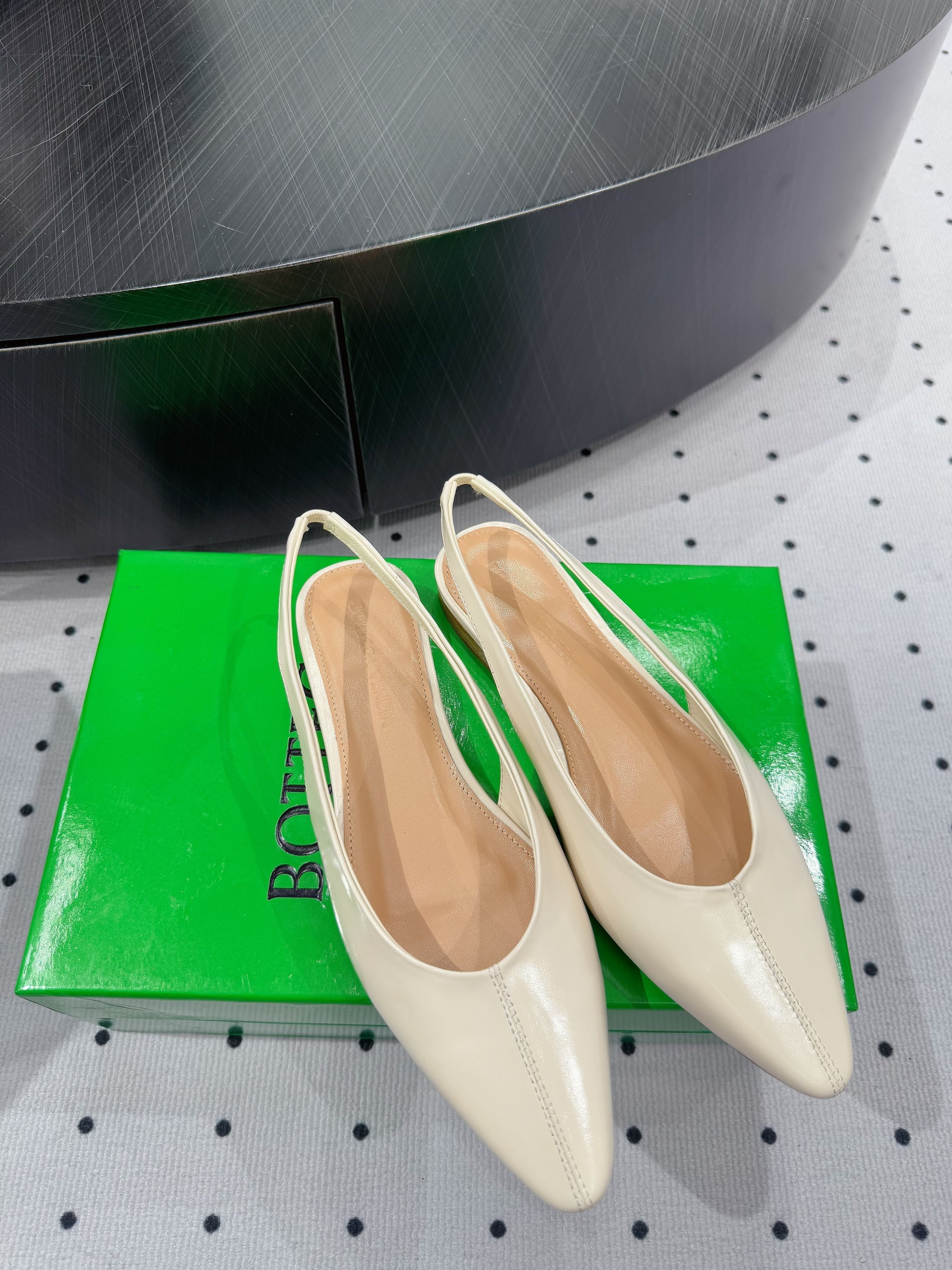 BOTTEGA VENETA 26S SLINGBACK FLATS IN LIGHT BEIGE CALFSKIN