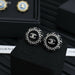 CC 25P STUD EARRINGS IN BLUE DENIM BLACK CALFSKIN-THREADED BUTTON