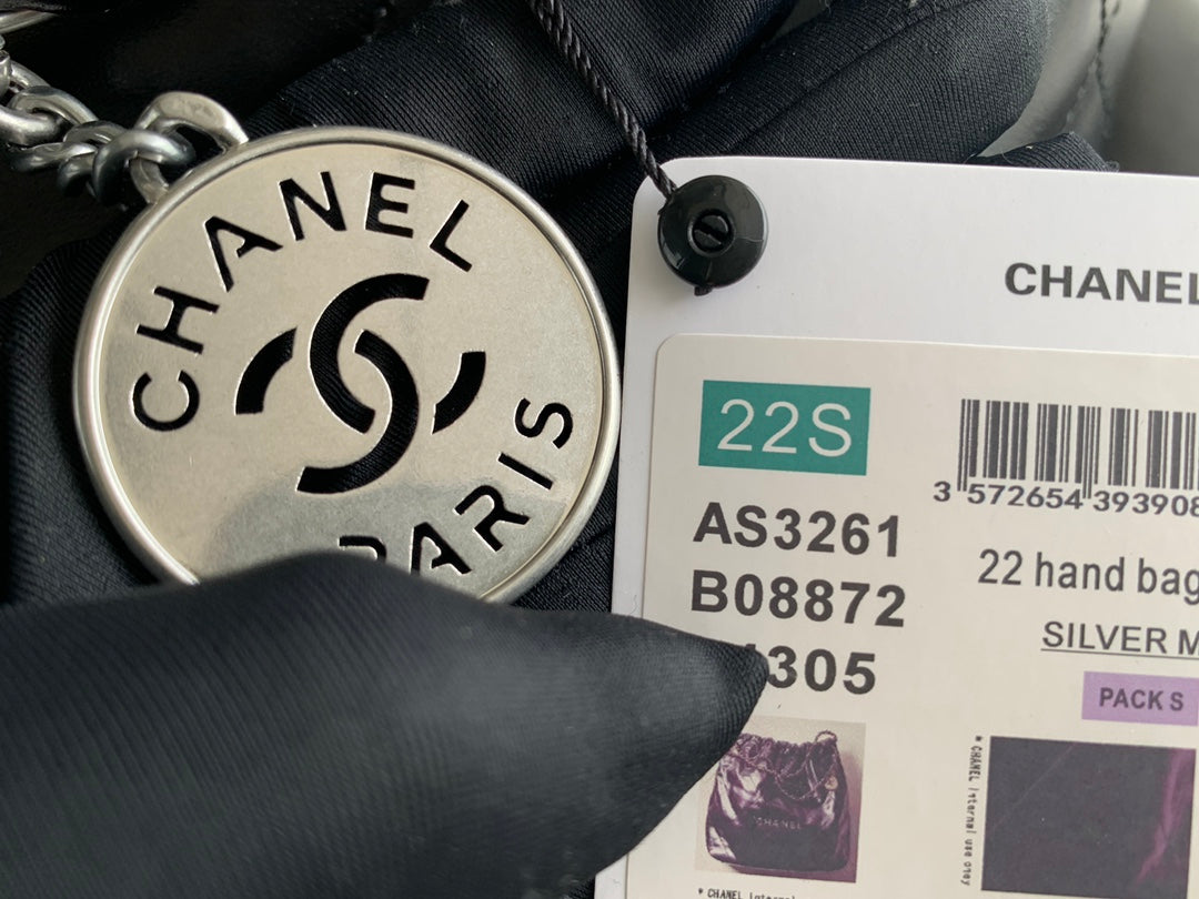 CC LARGE 42 HANDBAG IN BLACK SHINY CALFSKIN SILVER HARDWARE