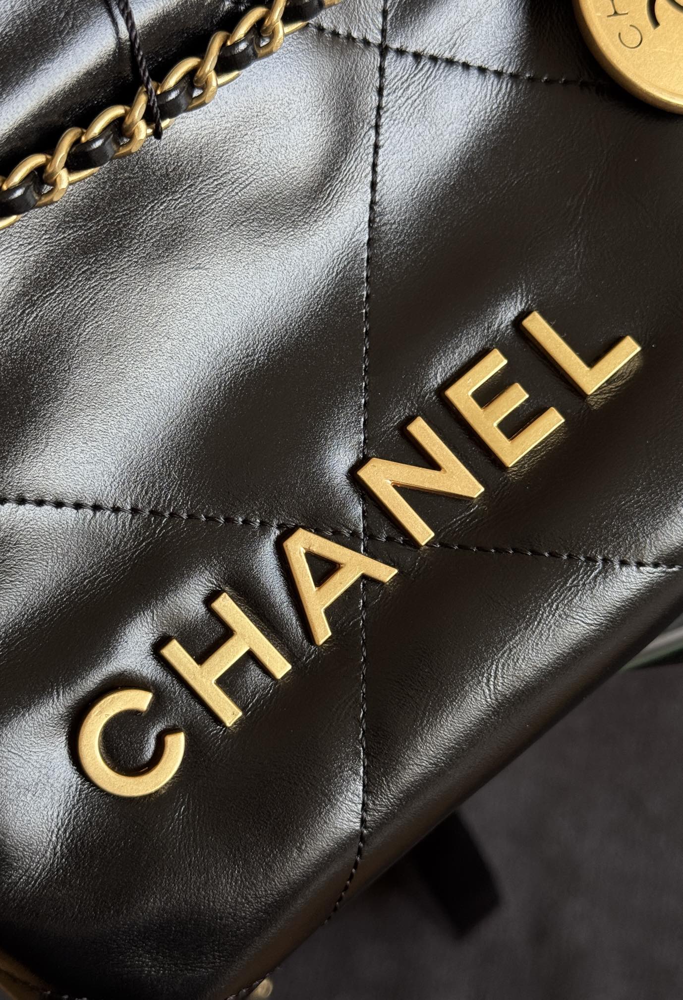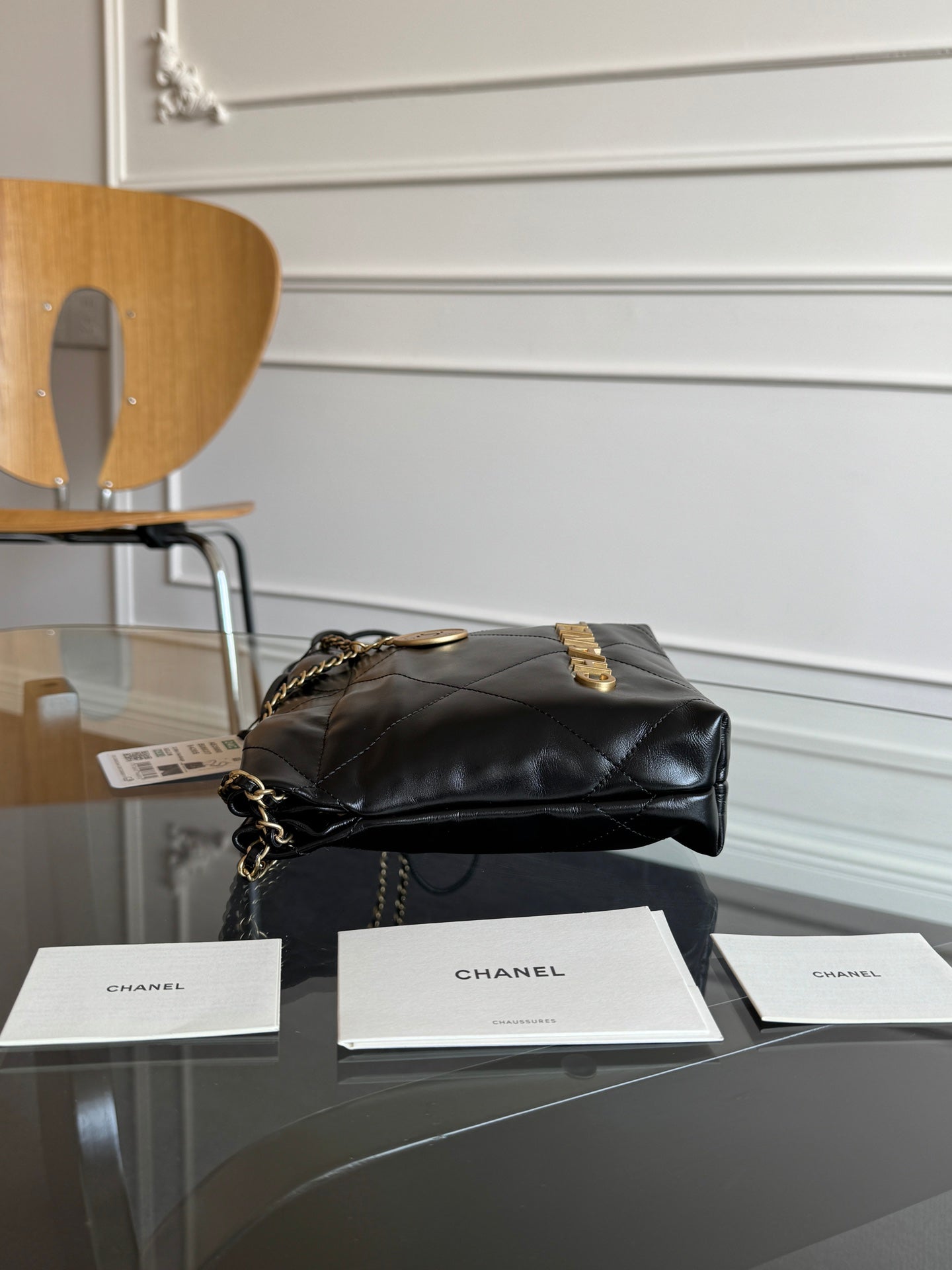 CC MINI HOBO HANDBAG 20 IN BLACK CALFSKIN GOLD-TONE HARDWARE