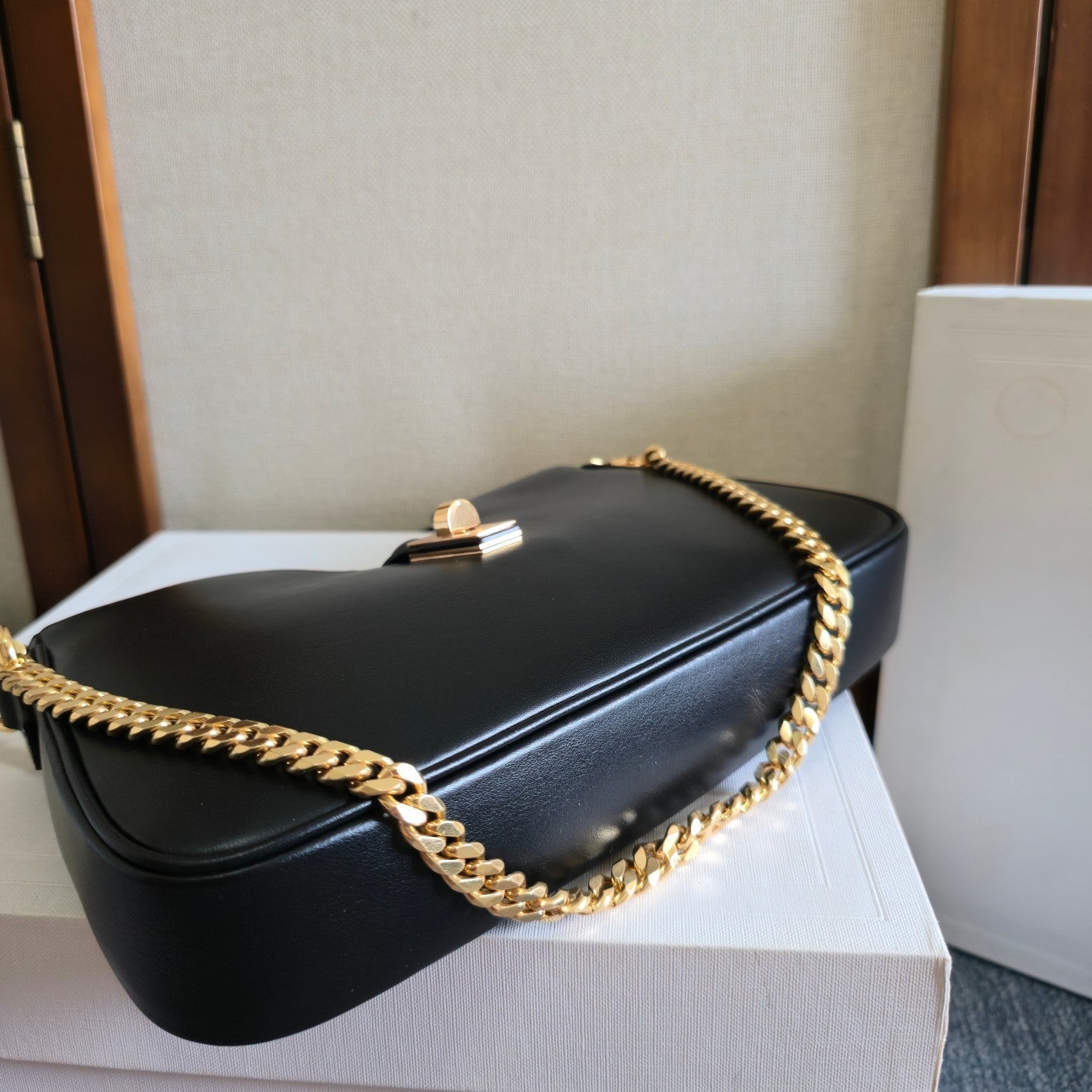 CELINE 25S SHOULDER CAMILLE 16 SOFT 27MM IN BLACK CALFSKIN GOLD HARDWARE