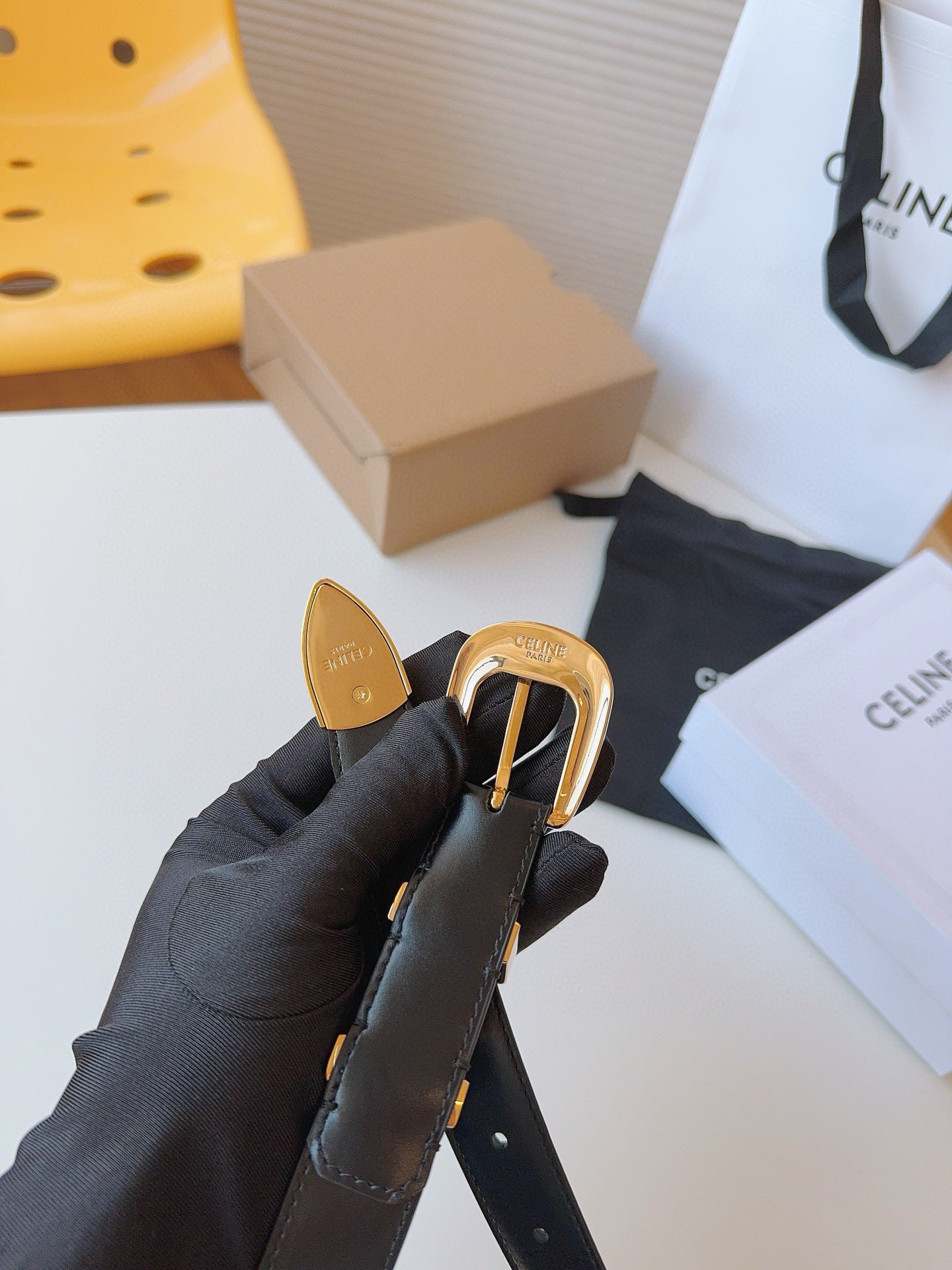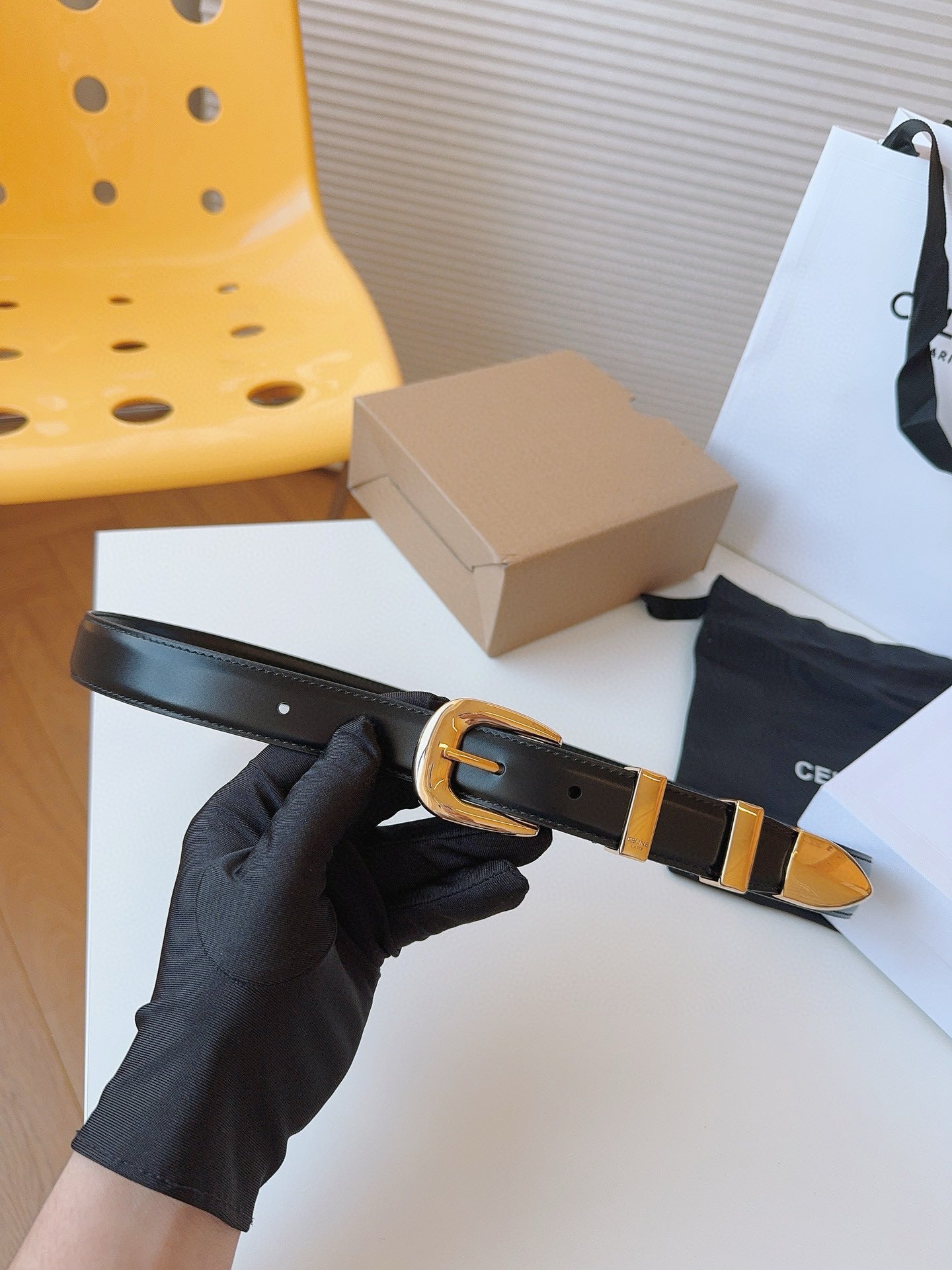 CELINE 25S SMALL 25MM WESTERN BELT IN BLACK CALFSKIN 566638