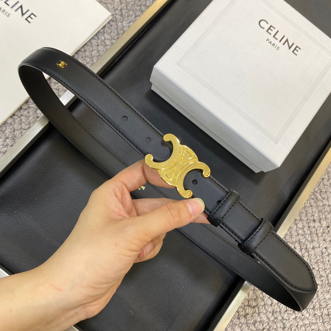 CELINE 25S TRIOMPHE BELT 25MM IN BLACK CALFSKIN 548081