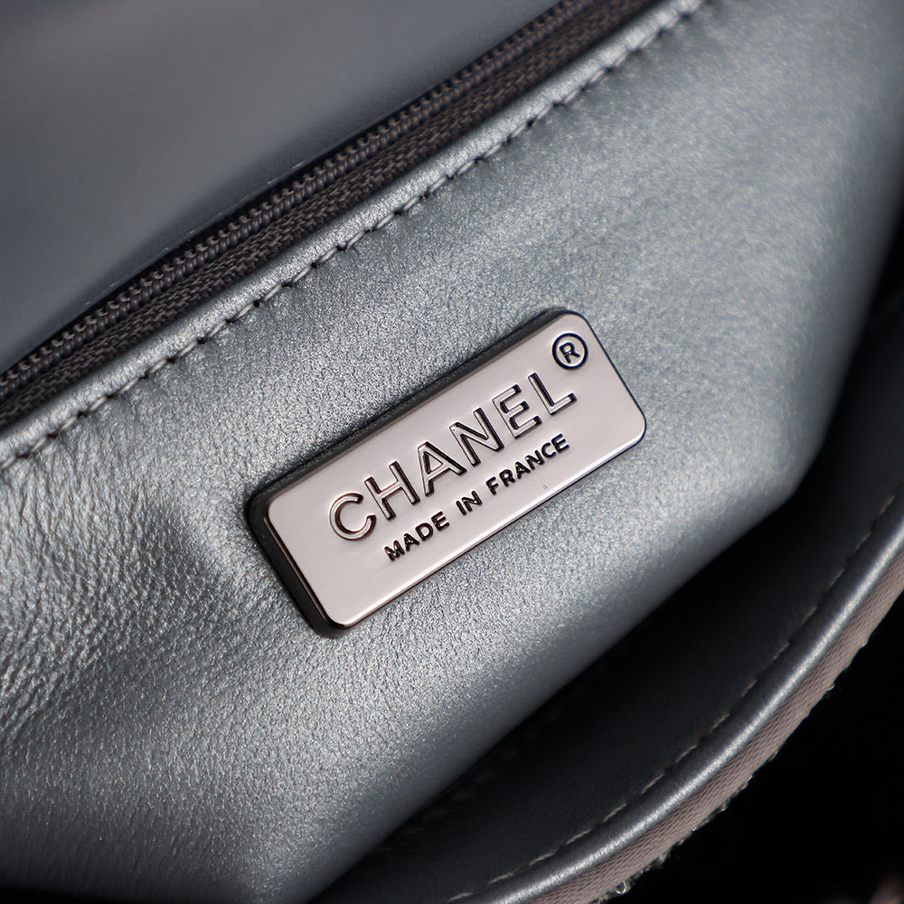 CHANEL 25S FLAP BAG 21 CM IN DARK GREY SEQUINED TWEED
