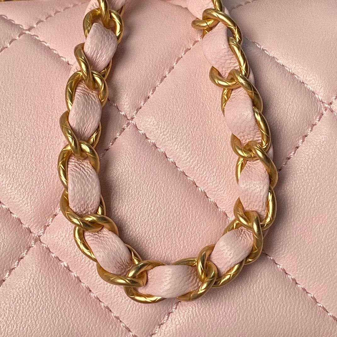 CHANEL 25S FLAP BAG 21 CM IN LIGHT PINK LAMBSKIN WITH TOP HANDLE