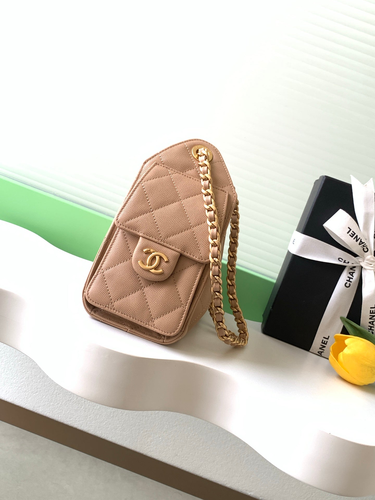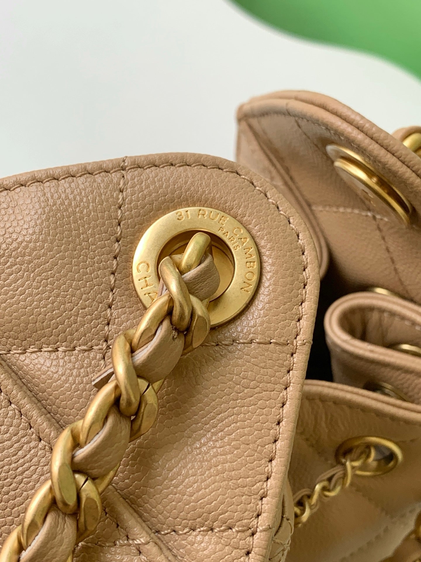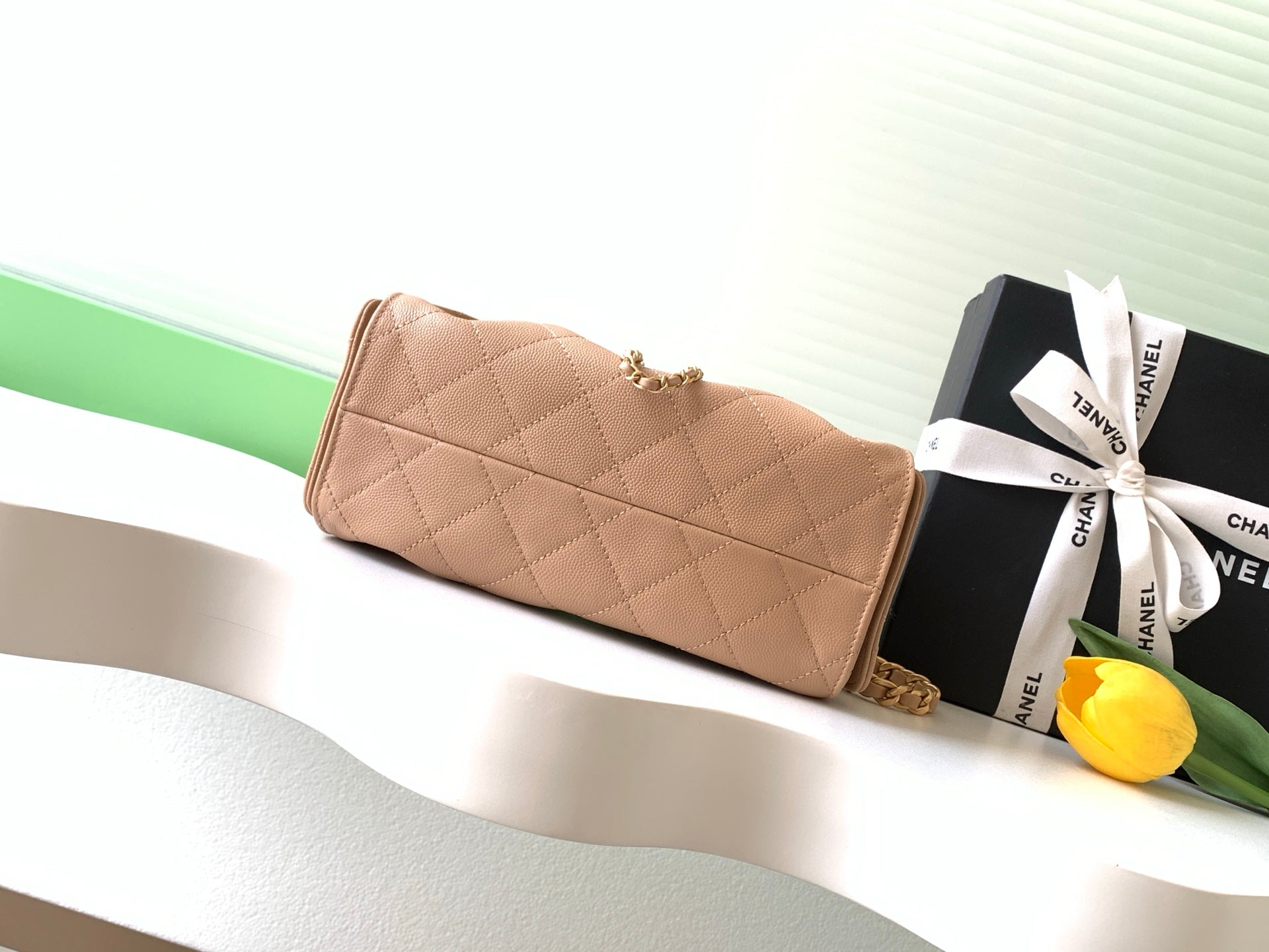 CHANEL 25S HOBO BAG 22 IN BEIGE BROWN CAVIAR LEATHER WITH GOLD HARDWARE