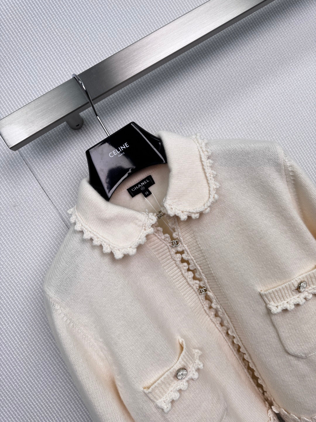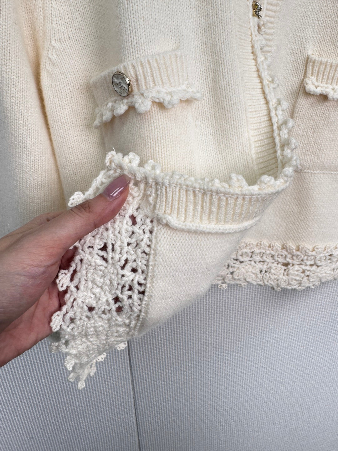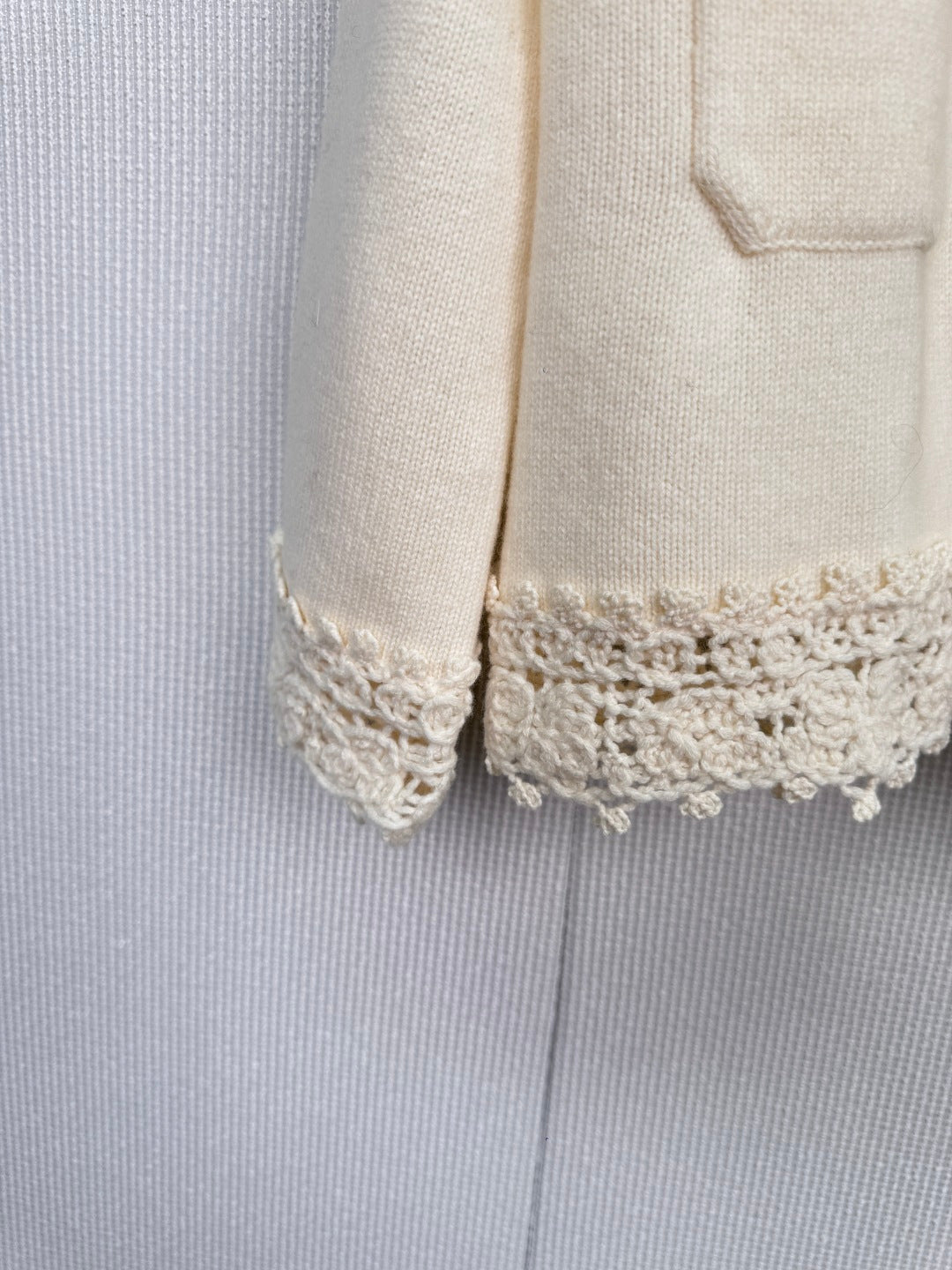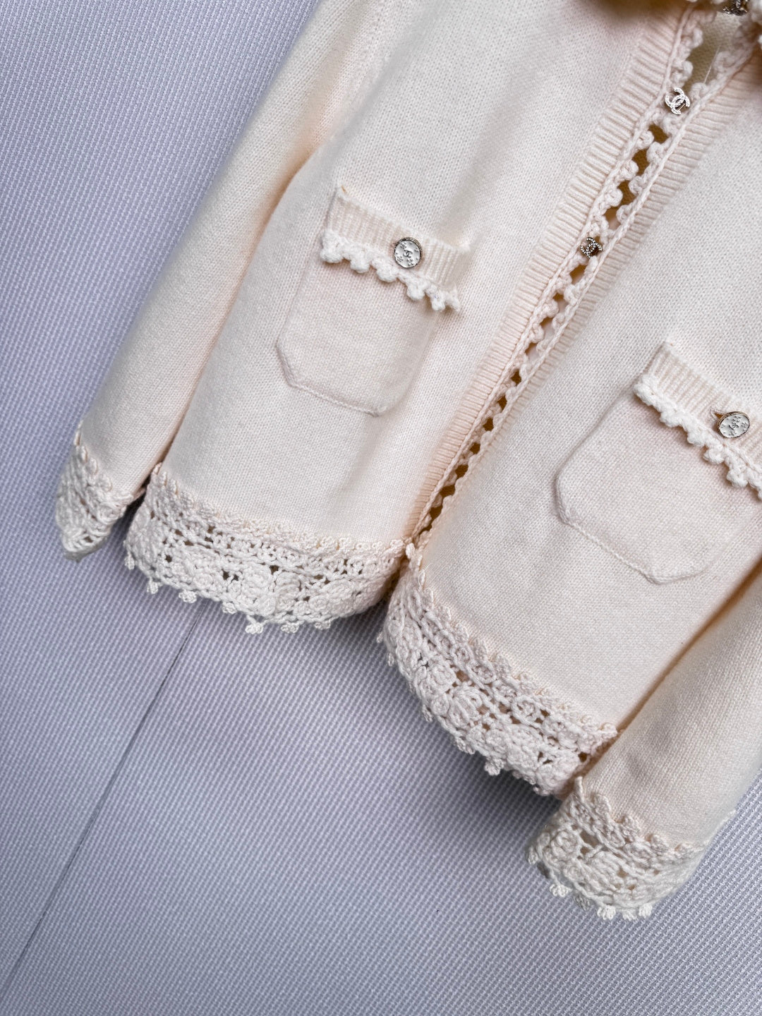CHANEL 25S KNIT CARDIGAN WITH LACE COLLAR 417