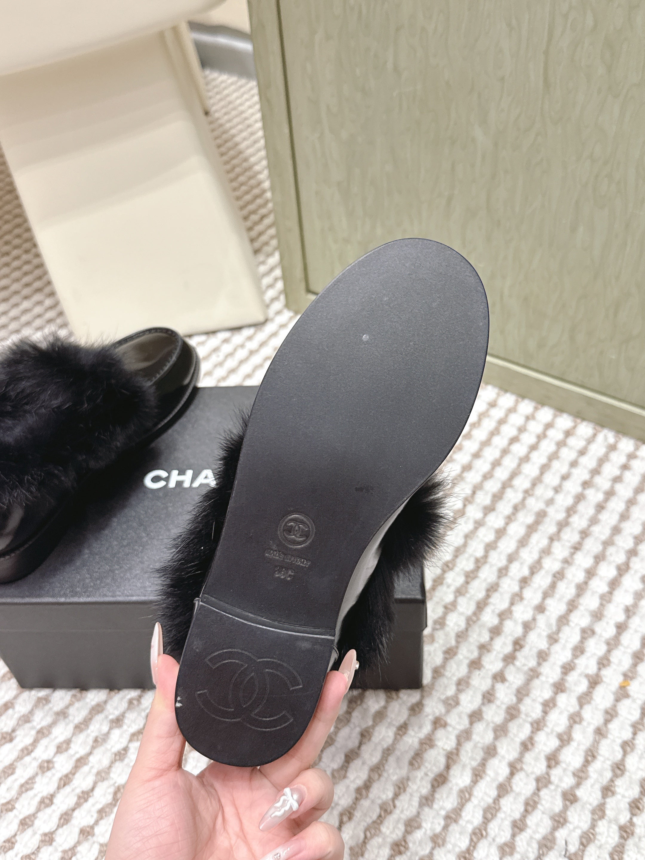 CHANEL 25S LOAFERS MOCCASIN IN BLACK GLOSSY CALFSKIN WITH MINK FUR LINING