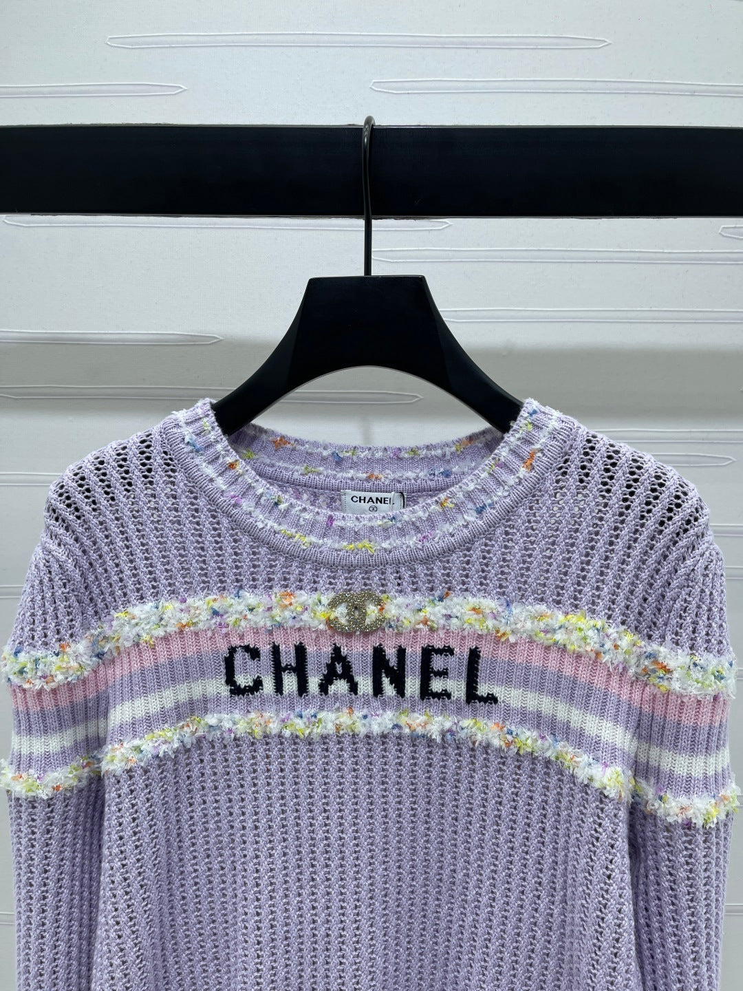 CHANEL 25S LONG SLEEVE OPEN-KNIT SWEATER STYLE 163