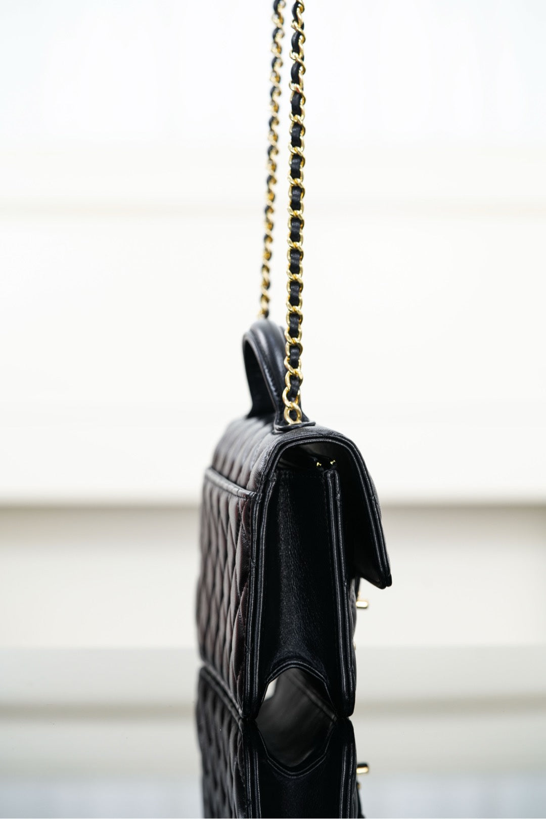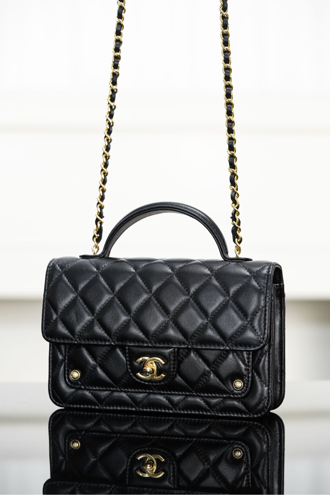 CHANEL 25S TOP HANDLE FLAP 19 CM IN BLACK LAMBSKIN WITH GOLD HARDWARE