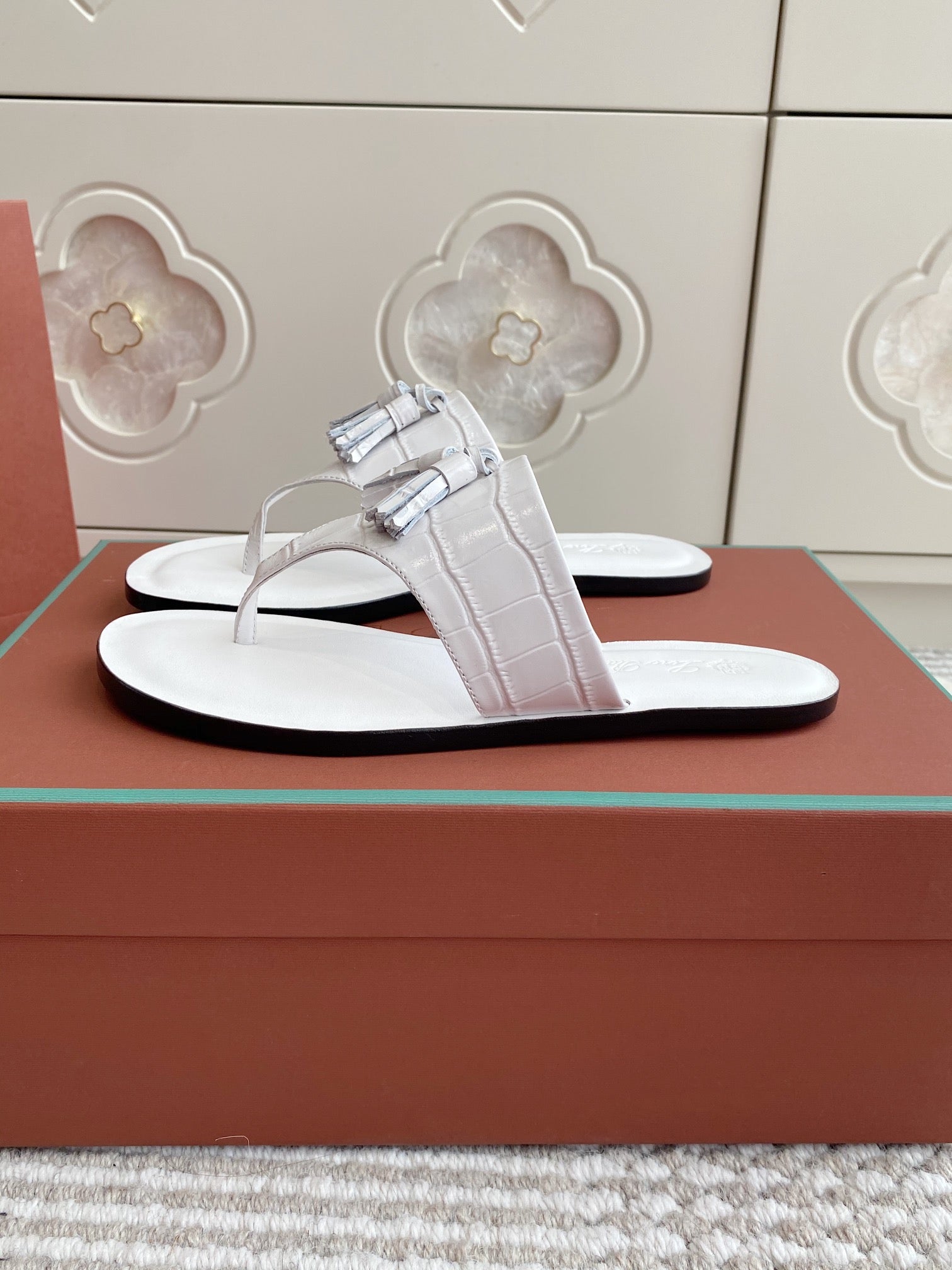 FLIP FLOPS IN WHITE LAMBSKIN SNAKE EMBOSSING