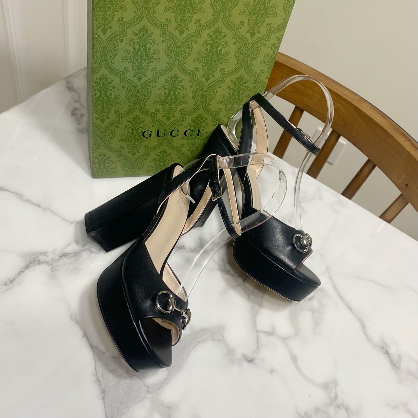 GUCCI 26S HIGH-HEELED SANDALS 105 MM IN BLACK CALFSKIN