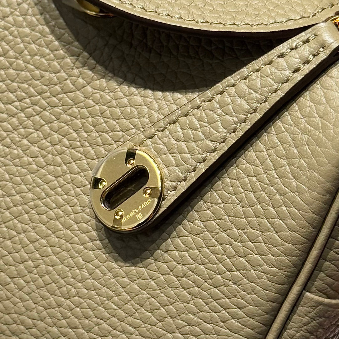 HERMES 25S MINI LINDY 19 IN BEIGE MARFA CALFSKIN GOLD HARDWARE