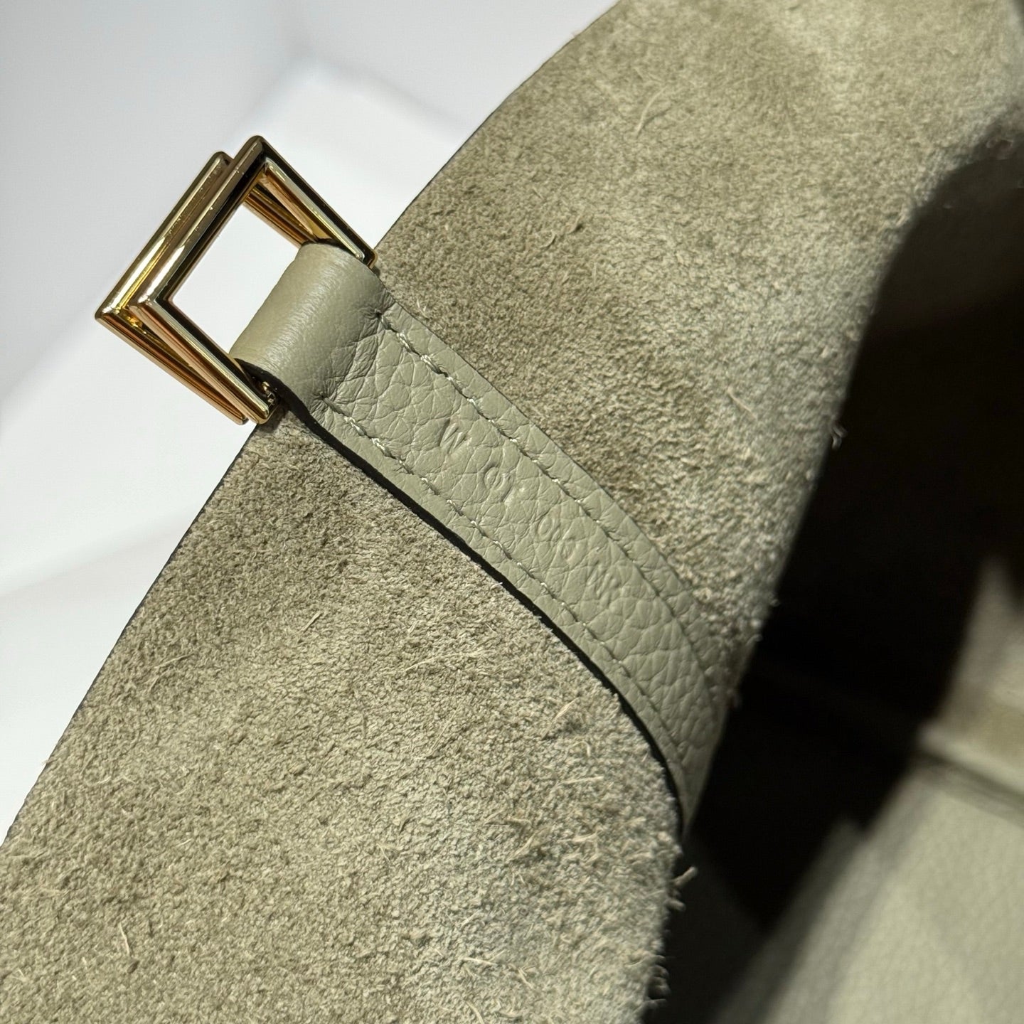 HERMES 25S PICOTIN LOCK 22 IN CROMWELL GRAY CALFSKIN GOLD HARDWARE