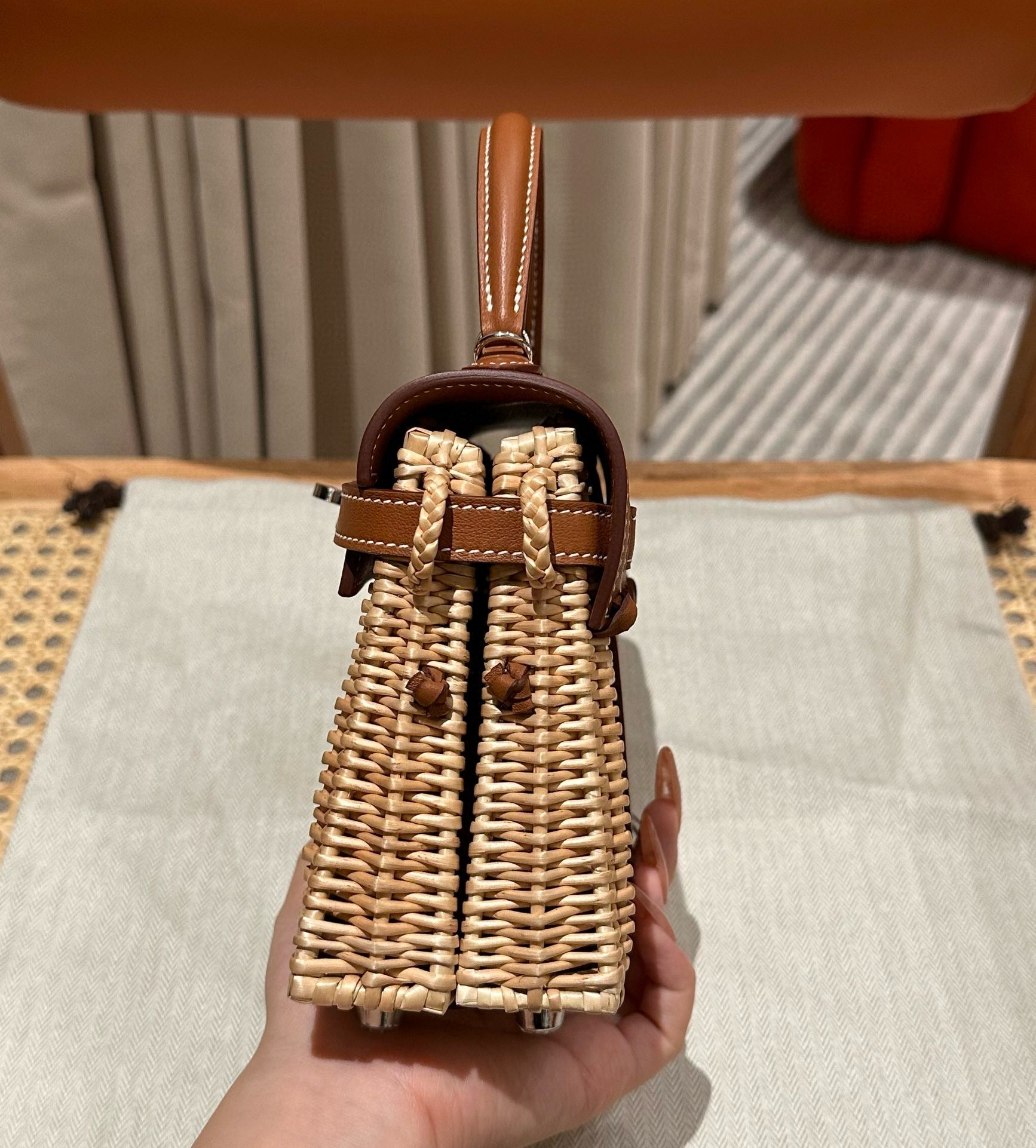 • Material: Leather and wicker
