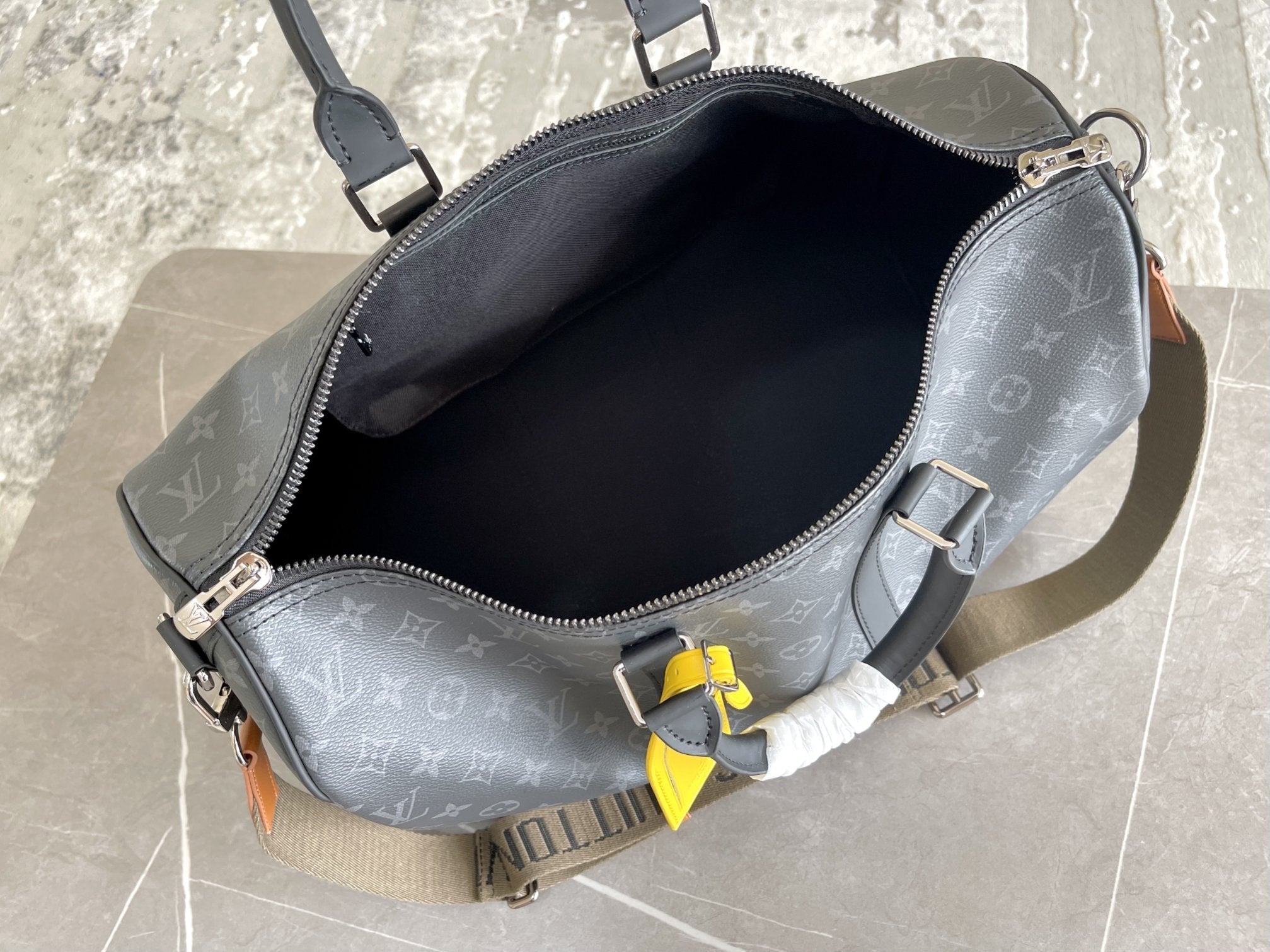 love the bag; it's gorgeous and perfect. the luggage tag as shown was not the same in person