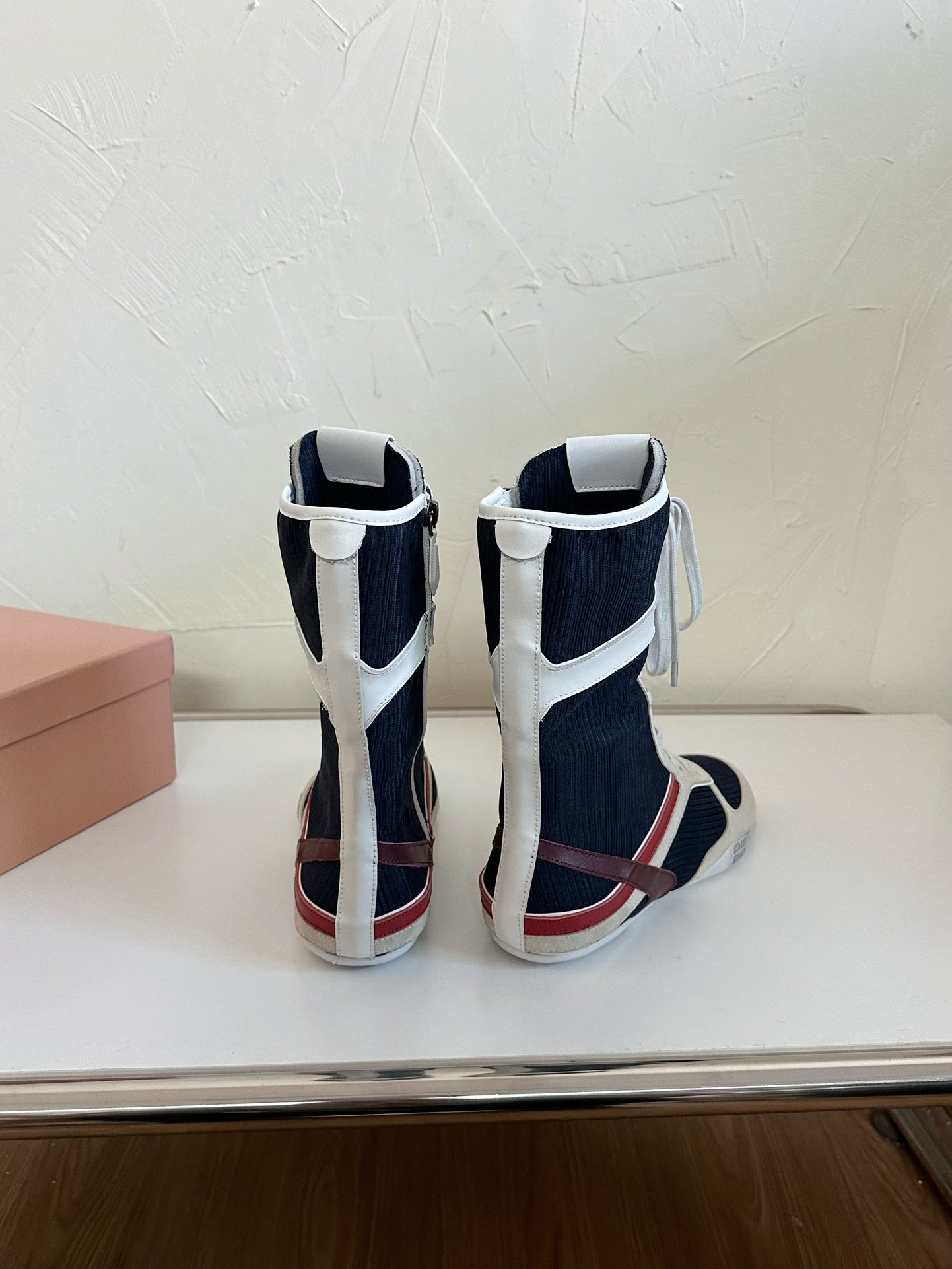 • Color: Beige and navy