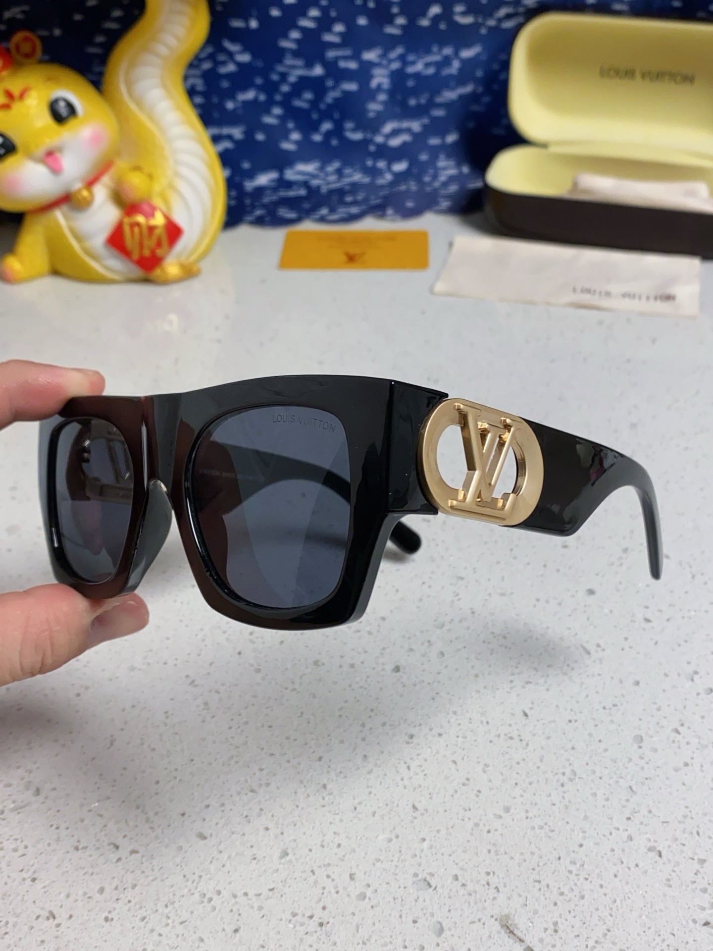 LINK SQUARE SUNGLASSES 570276 IN BLACK ACETATE GOLD LOGO