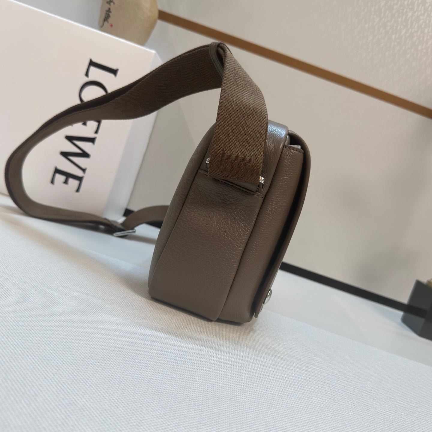 LOEWE 25S PEBBLE BAG 23 IN DARK TAUPE CALFSKIN SILVER HARDWARE