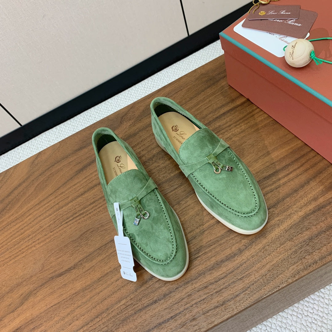 LP LOAFERS 25S IN LIGHT GREEN CASHMERE WITH SILVER HARDWARE