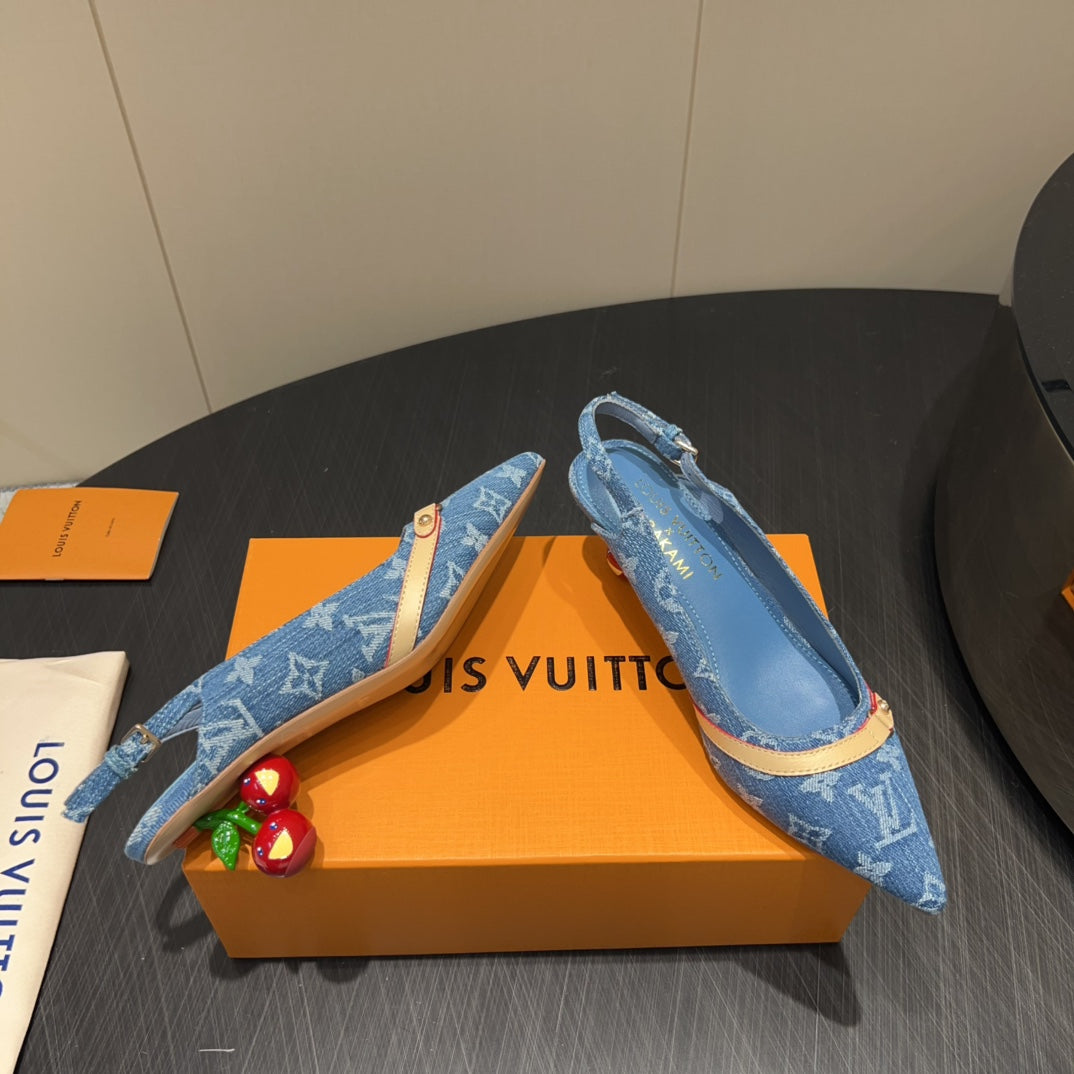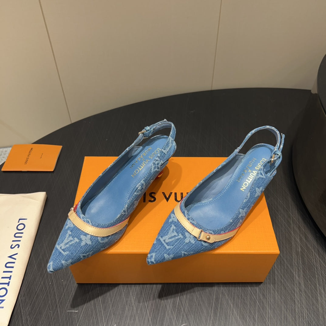LV HIGH SLINGBACK LOGO PRINT 25S 55MM IN BLUE DENIM
