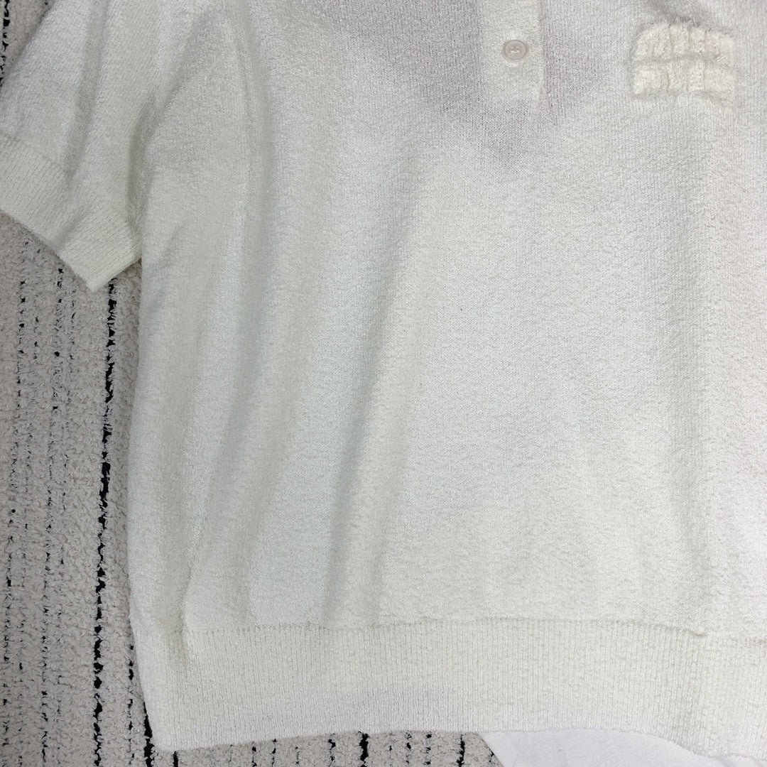 MIUMIU BUTTON-UP KNIT SWEATER WITH LAPEL COLLAR 268101
