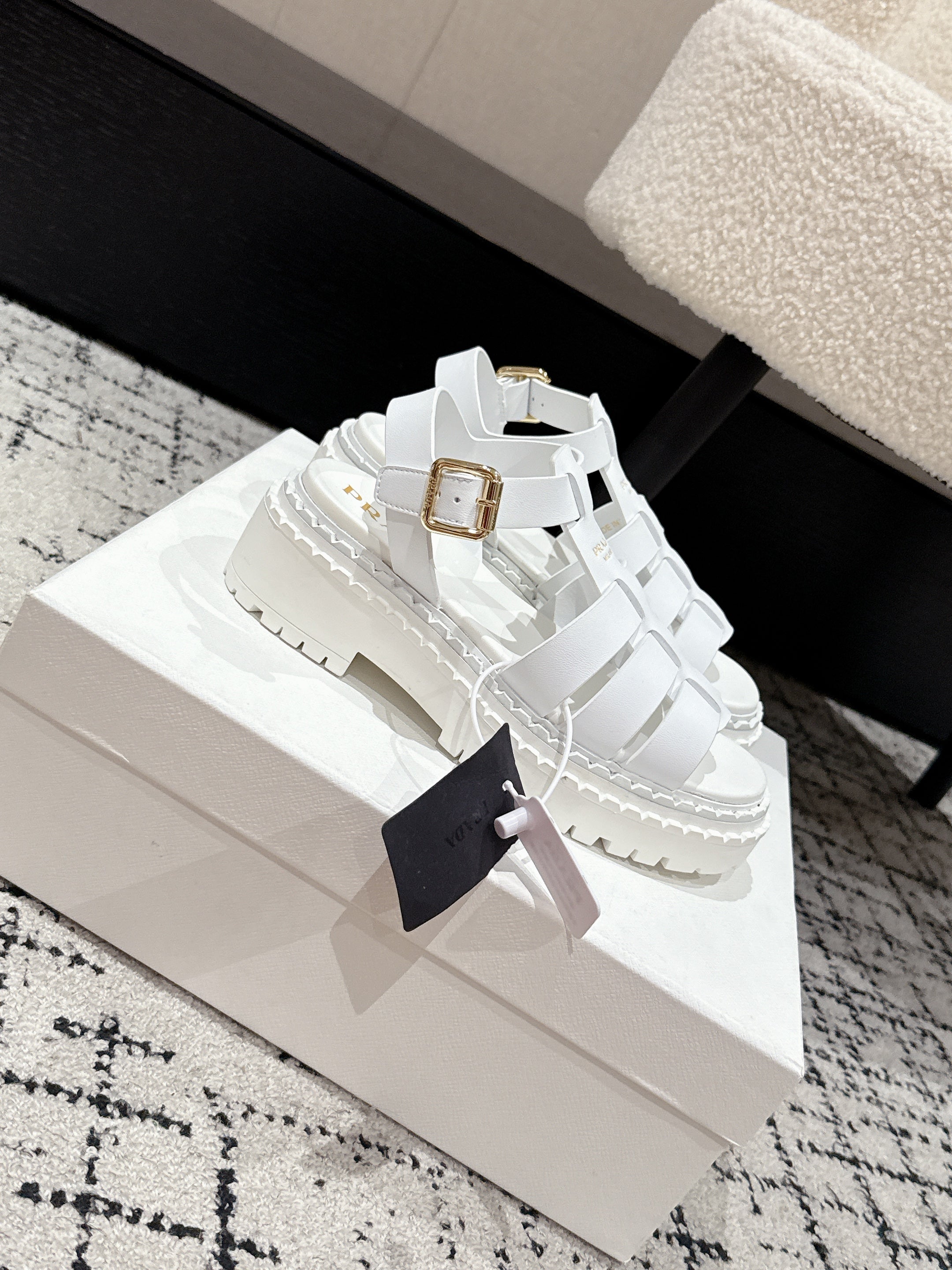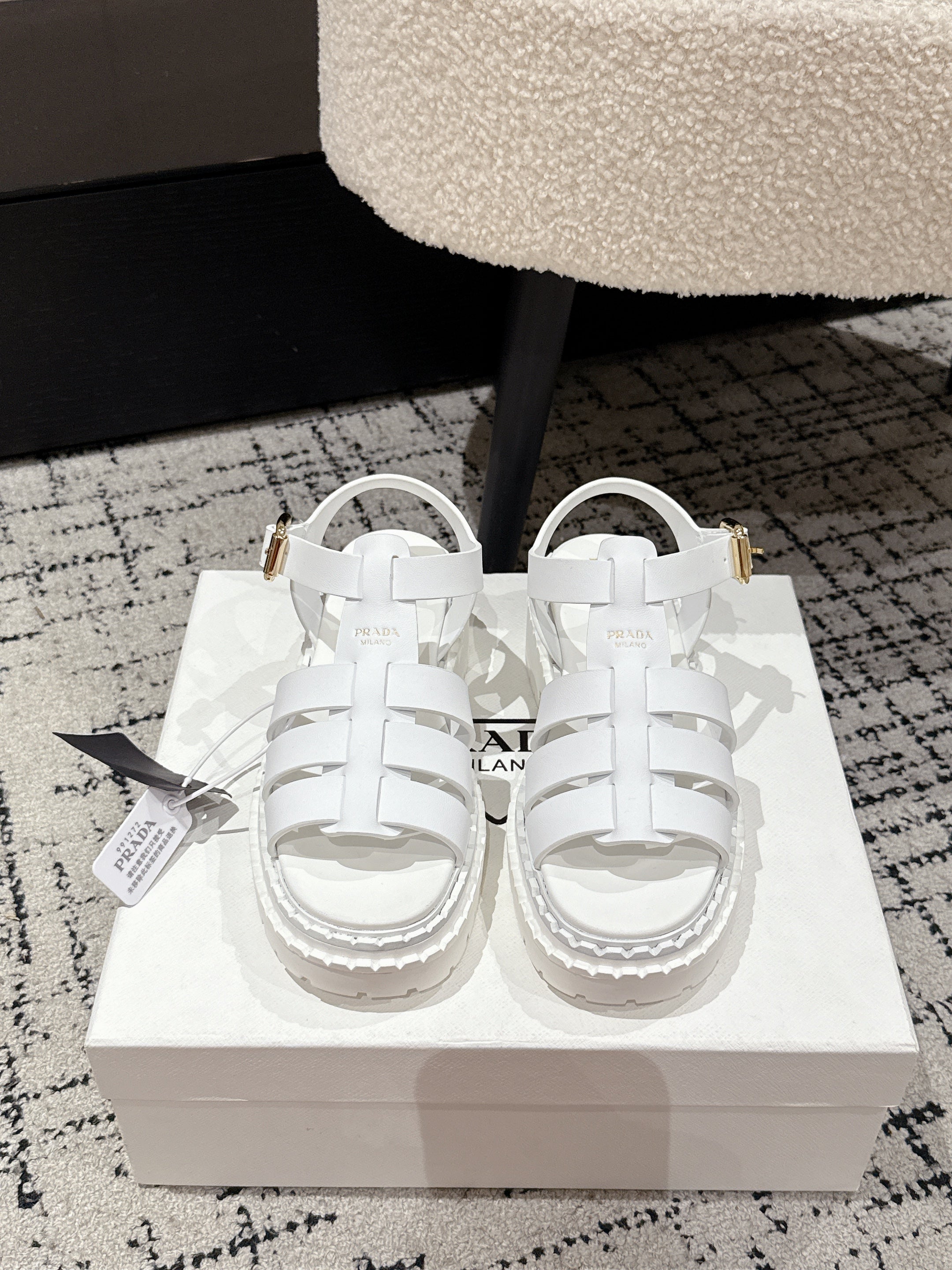PRADA 25S FISHERMAN OPEN TOE SANDALS IN WHITE CALFSKIN