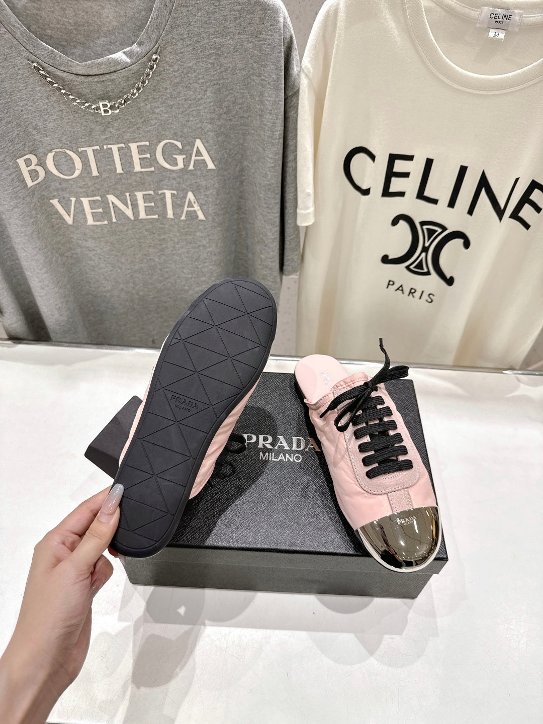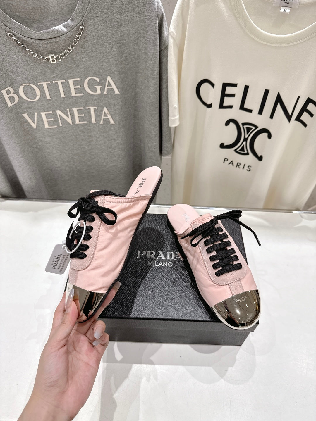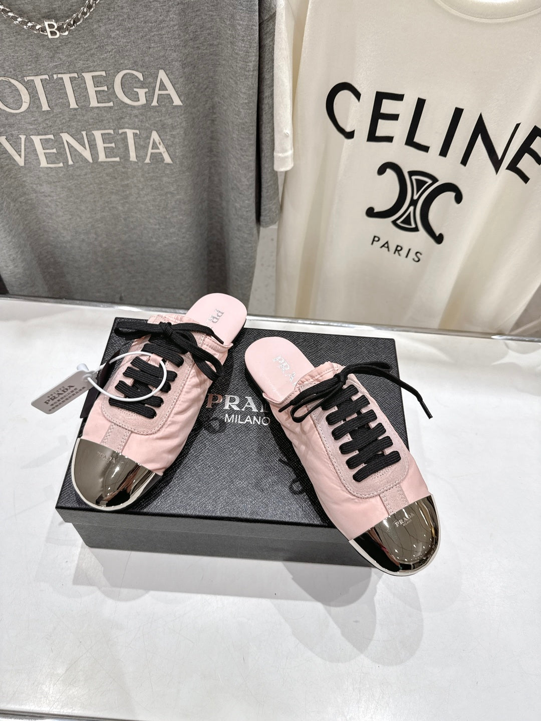PRADA 25S MULES IN LIGHT PINK WITH METAL TOECAP