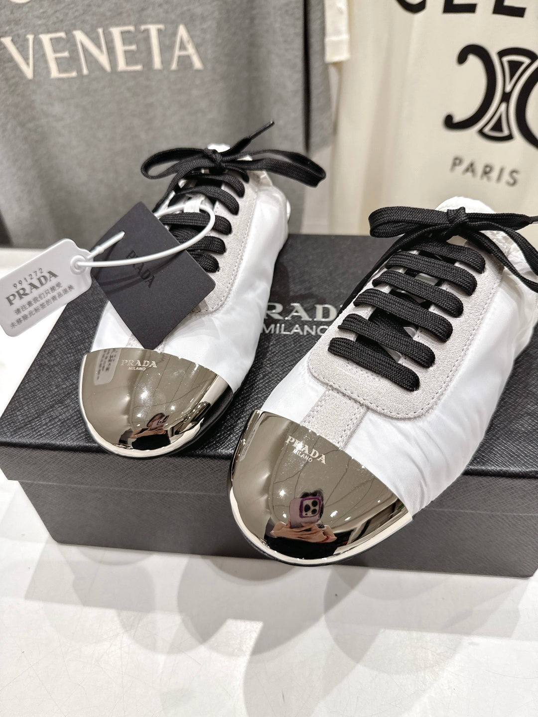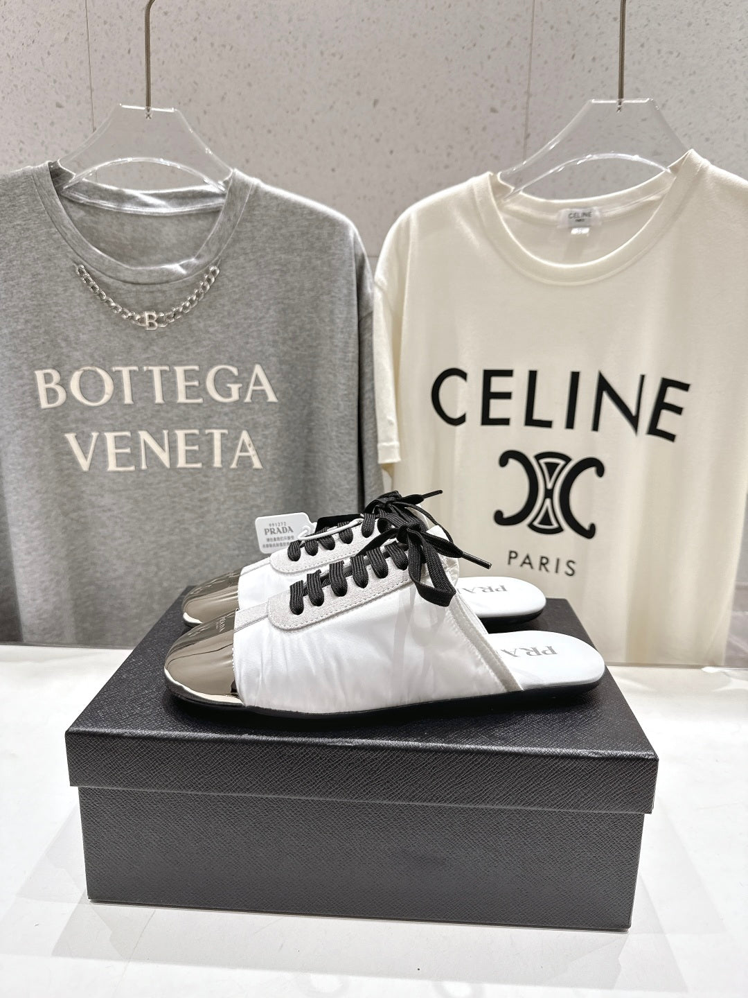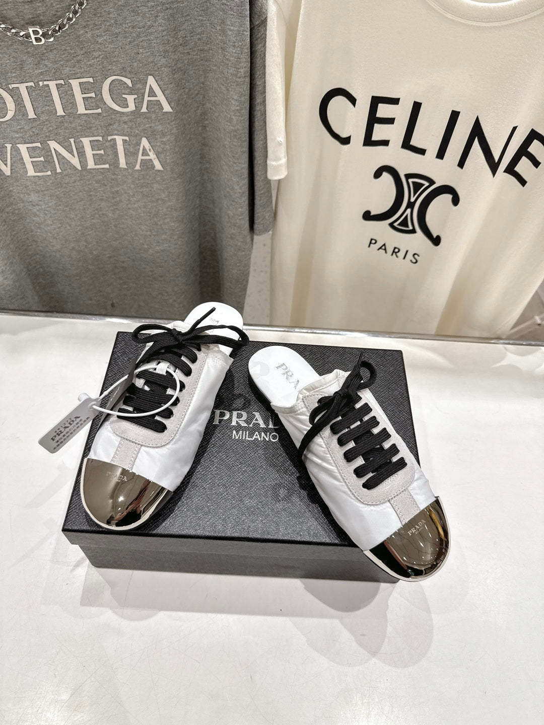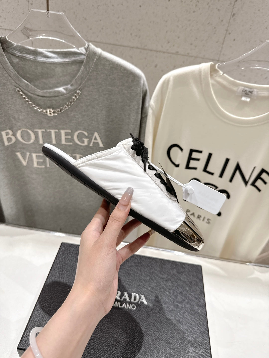 PRADA 25S MULES IN WHITE WITH METAL TOECAP