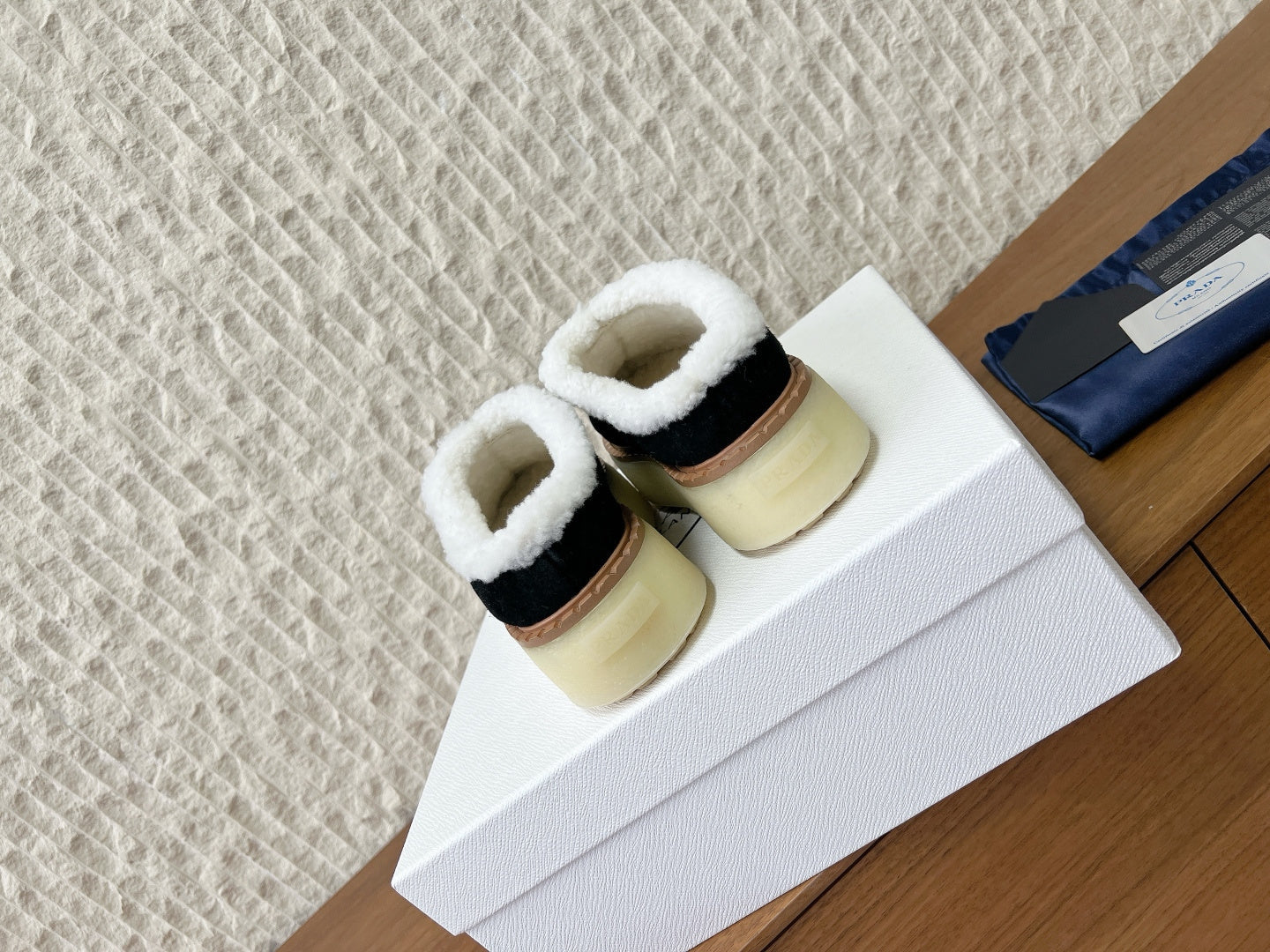 PRADA 25S PLATFORM FUR-LINED MULES IN BLACK SUEDE