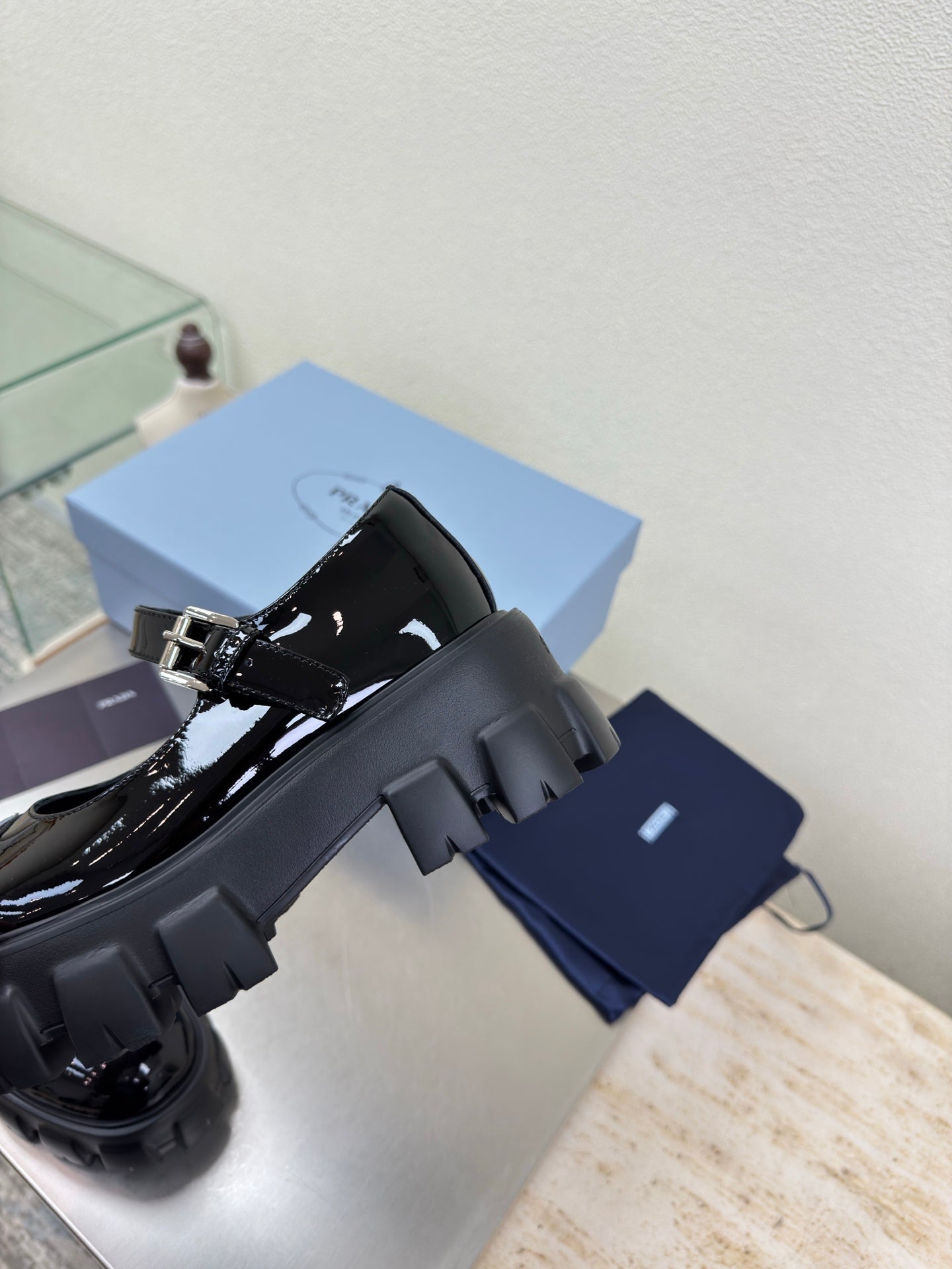 PRADA 25S PLATFORM MARY JANE SHOES IN BLACK GLOSSY CALFSKIN STYLE 2