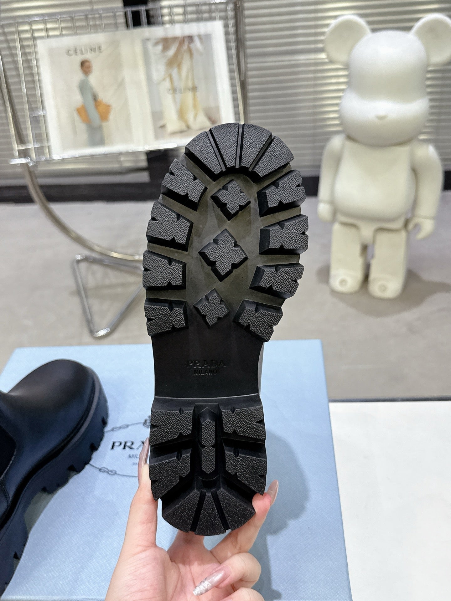PRADA 25S RETRO PLATFORM MARTIN ANKLE BOOTS IN BLACK CALFSKIN