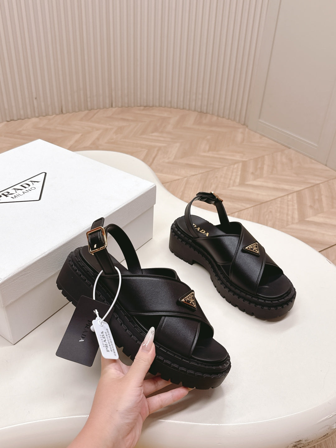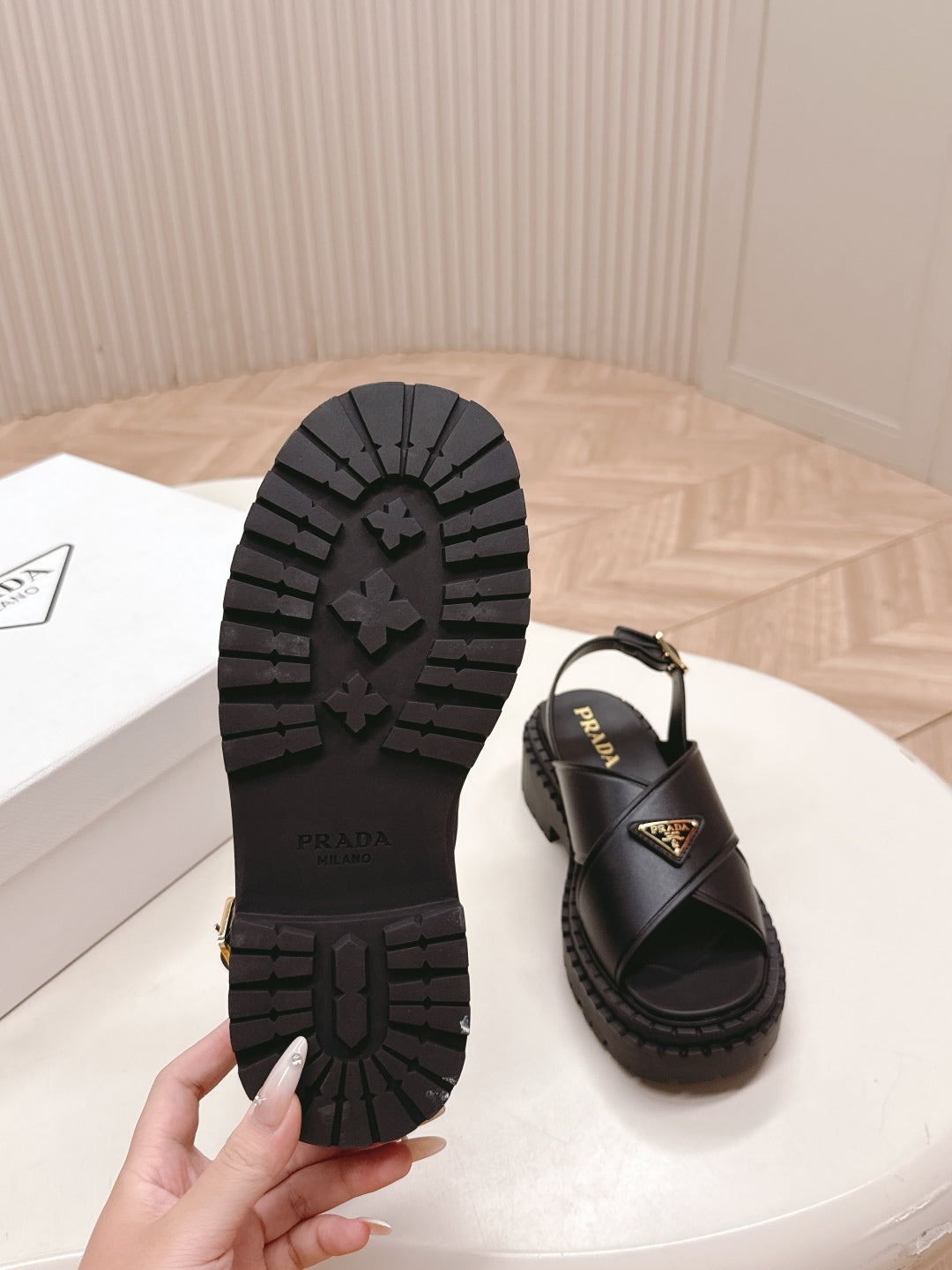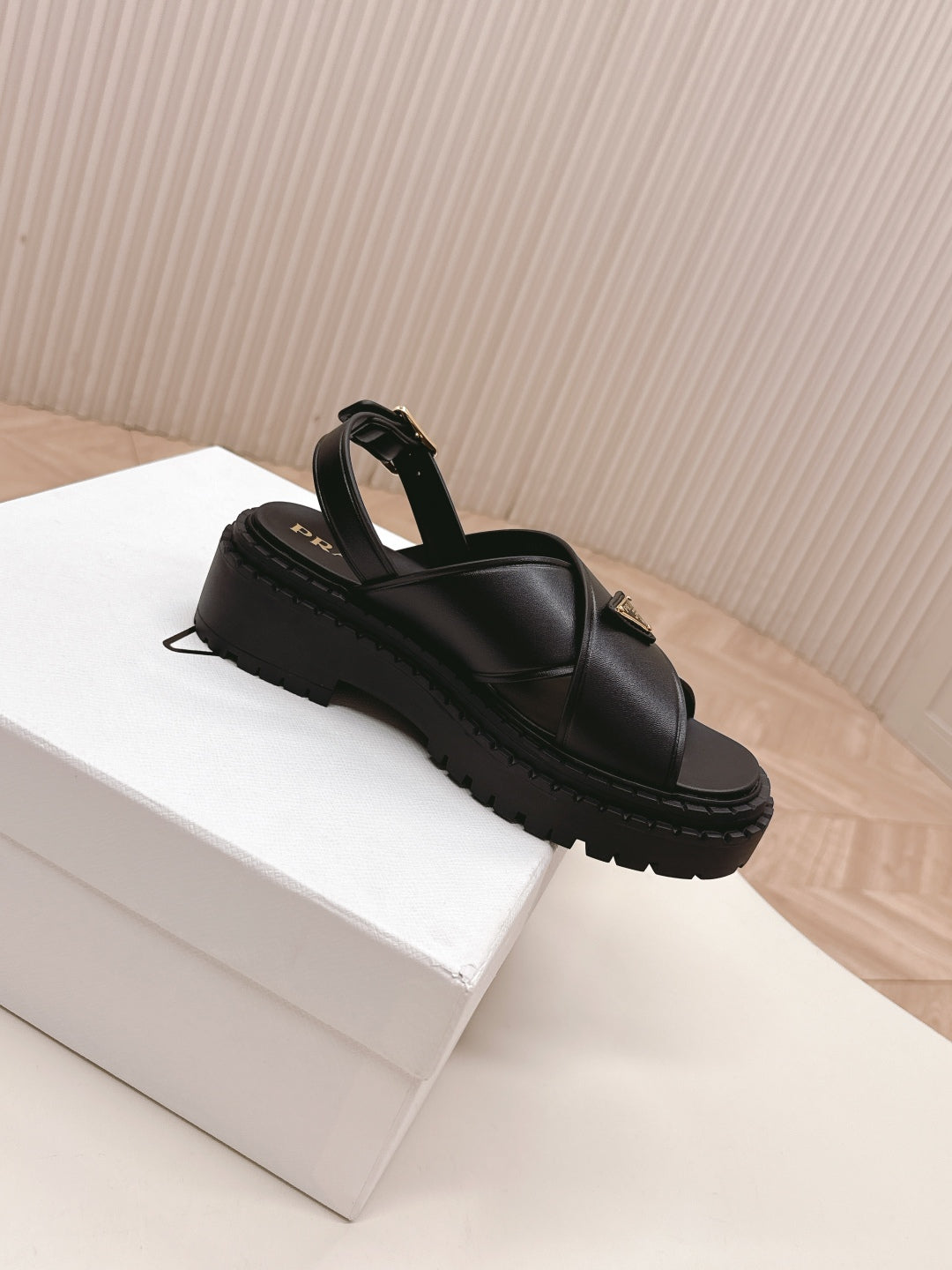PRADA 25S SANDALS IN BLACK CALFSKIN LOGO GOLD HARDWARE