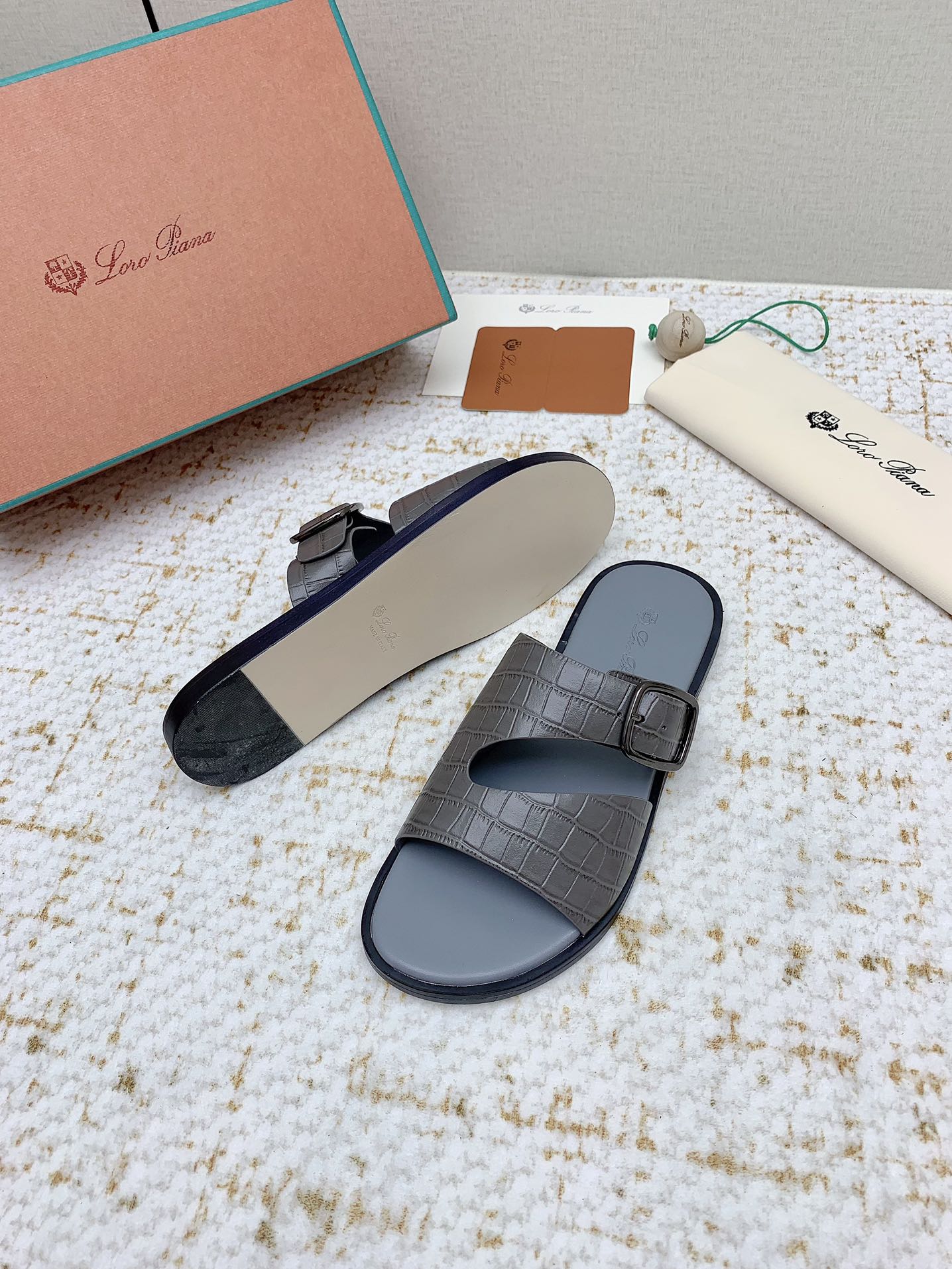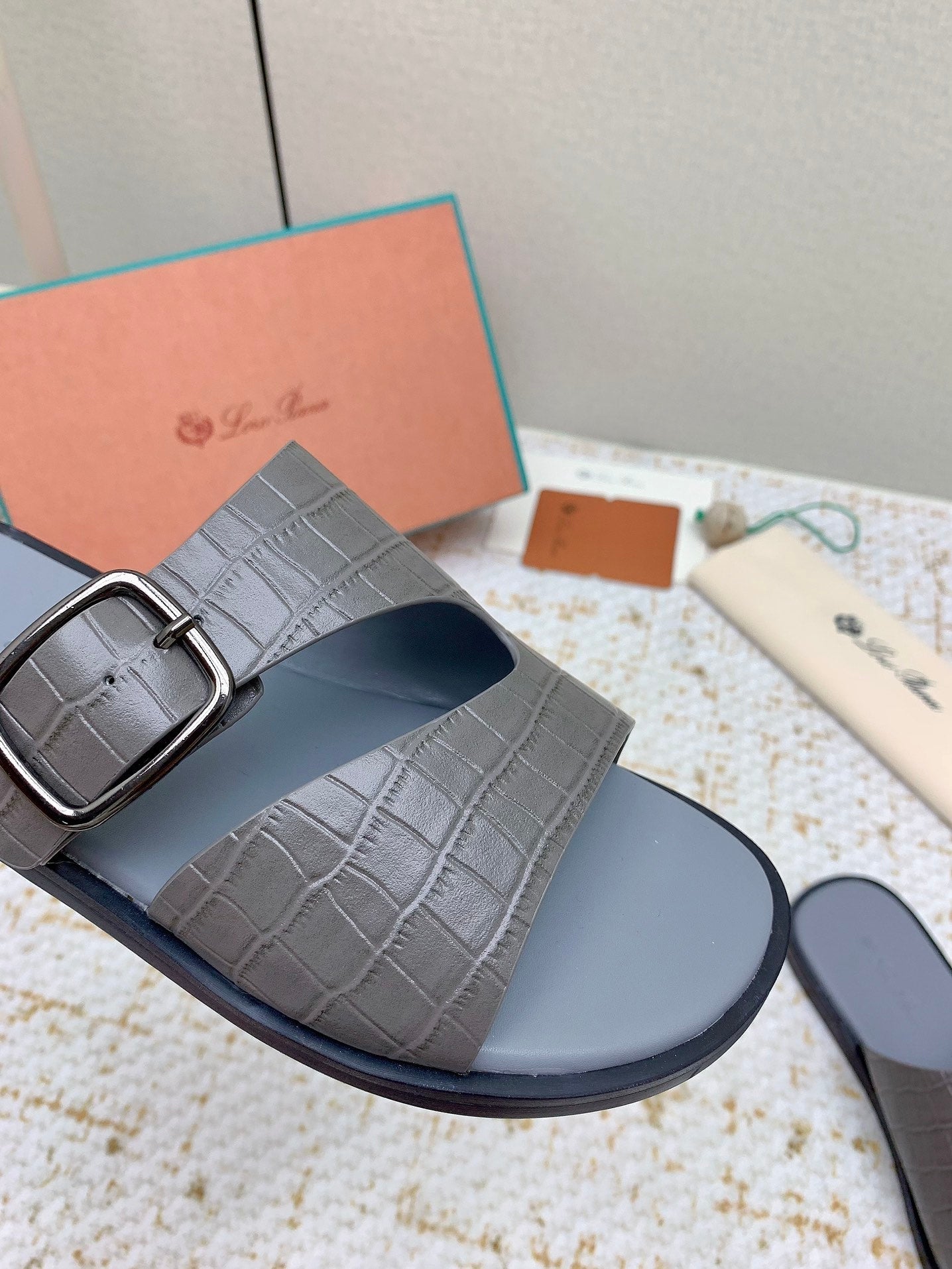 SANDALS IN DARK GRAY SNAKE EMBOSSED CALFSKIN