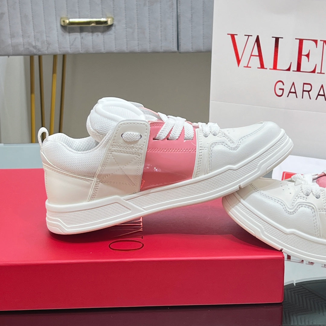 VALENTINO 25S GARAVANI OPEN SKATE SNEAKERS IN PEACH PINK LAMBSKIN STYLE 11