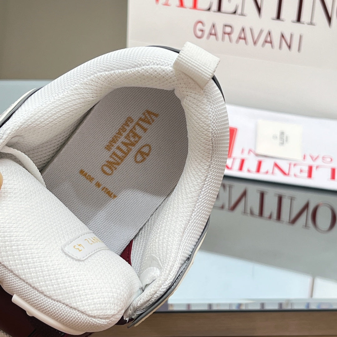 VALENTINO 25S GARAVANI OPEN SKATE SNEAKERS IN WHITE MIX BROWN LAMBSKIN STYLE 15