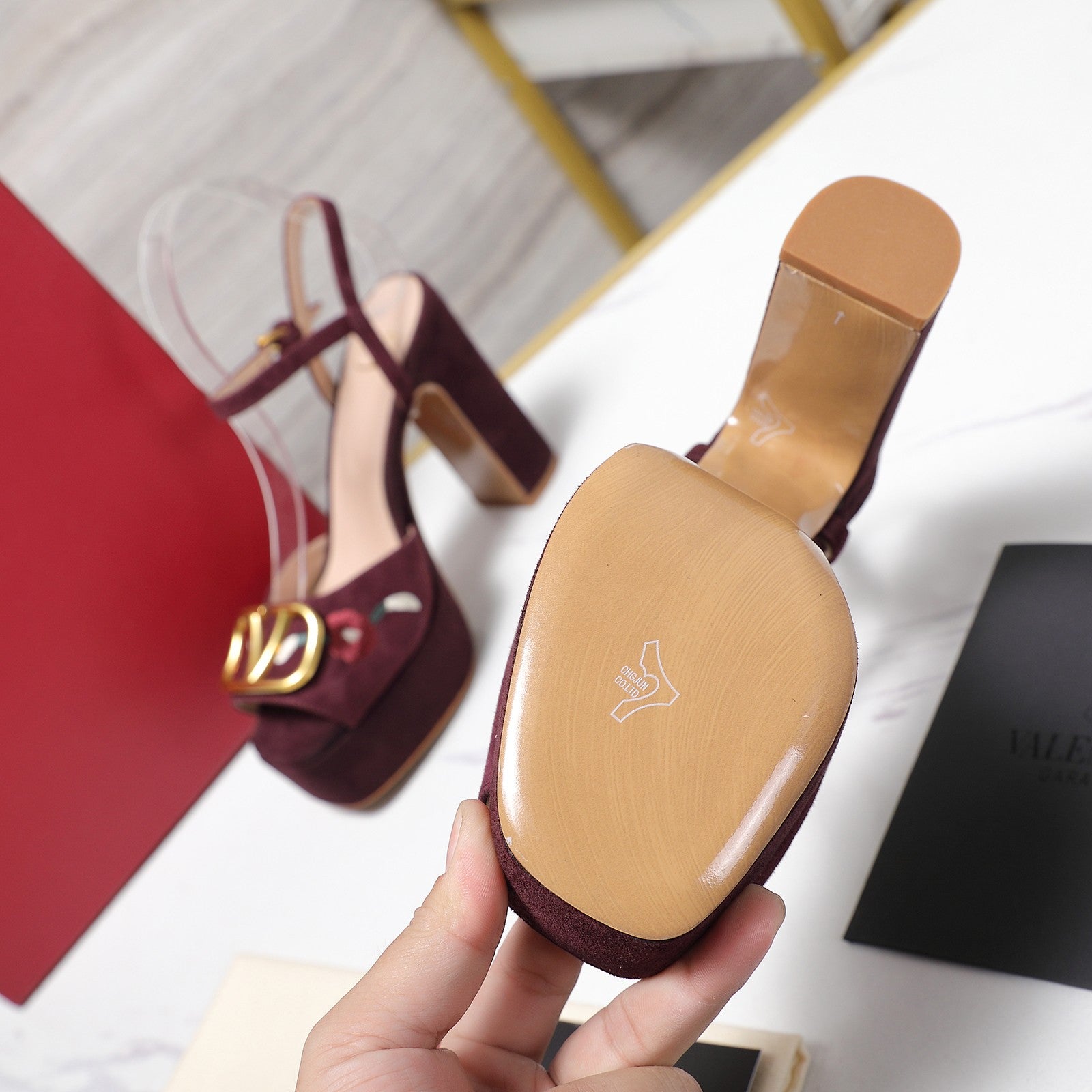 VALENTINO 25S GARAVANI VLOGO SIGNATURE HIGH-HEEL SANDALS 110 MM IN DARK RED SUEDE