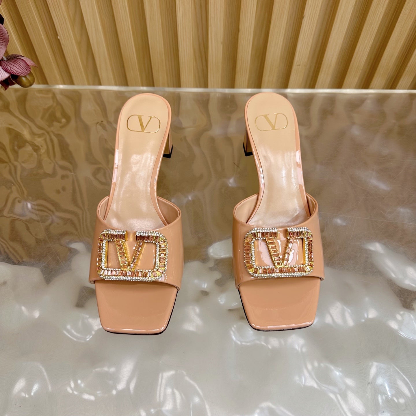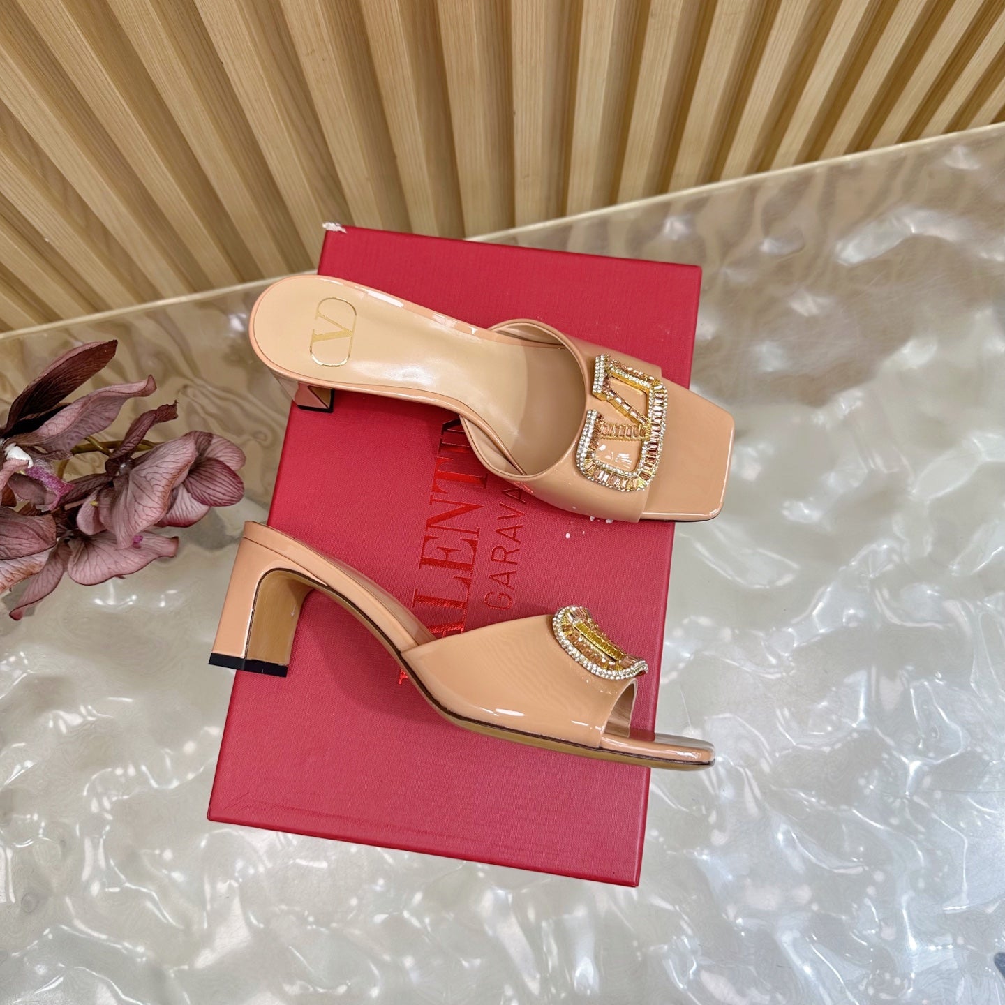 VALENTINO 25S HIGH-HEEL MULES 60 MM IN WARM BEIGE PATENT CALFSKIN WITH CRYSTAL-EMBELLISHED STRAP