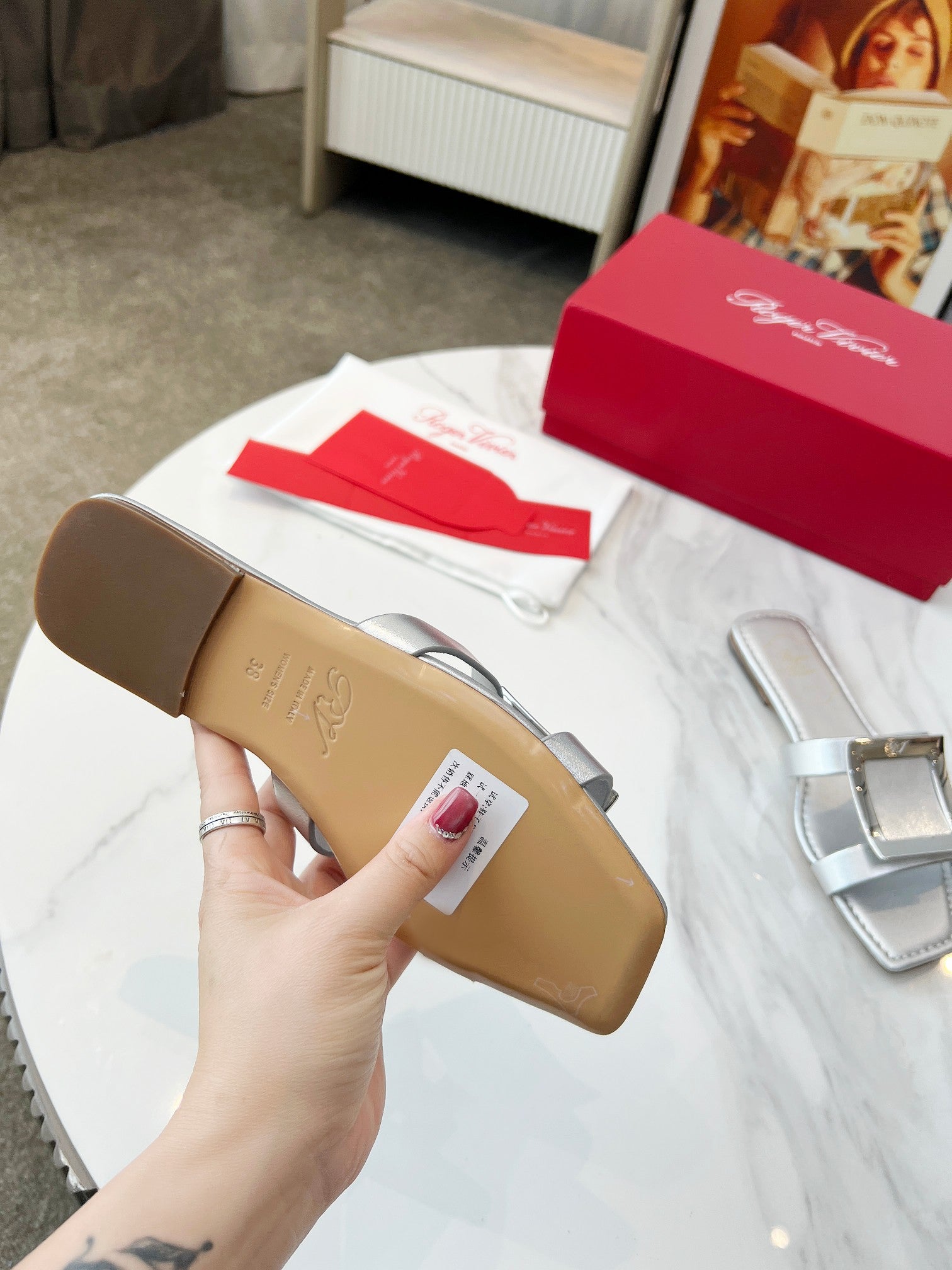 VIV' BY THE SEA MULES IN SILVER CALFSKIN SILVER BUCKLE
